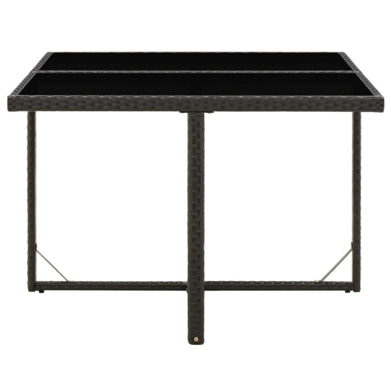 Table de jardin Noir 109x107x74 cm Résine tressée et verre
