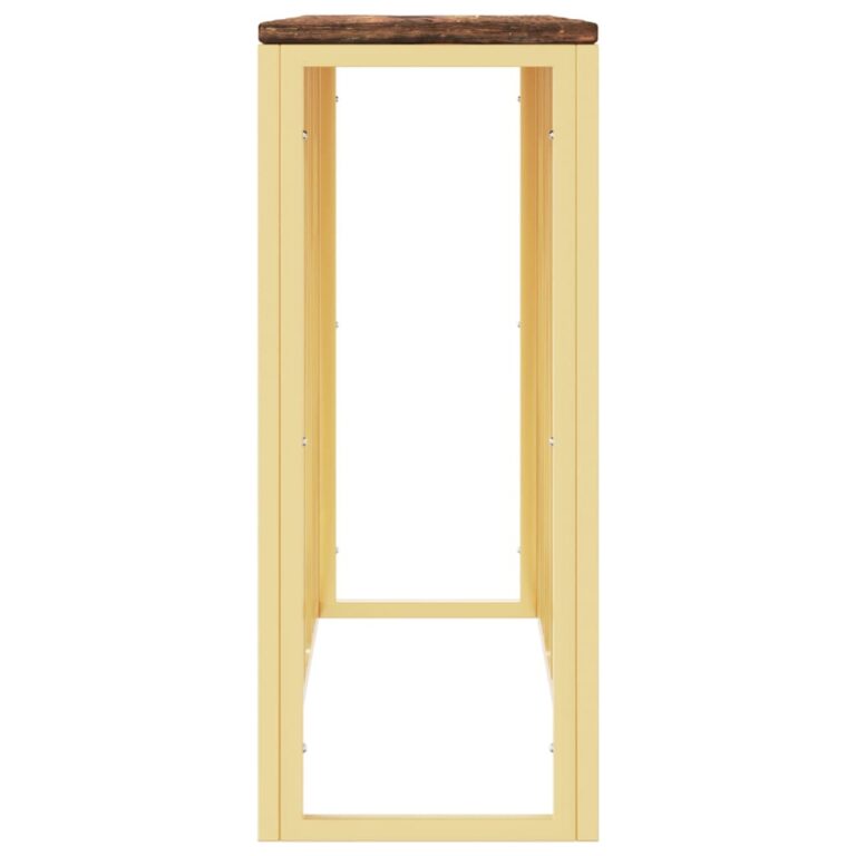 Table console doré acier inoxydable et bois massif récupération