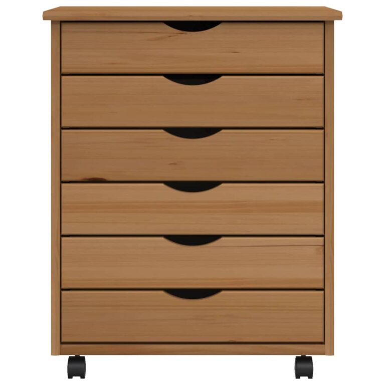 Armoire roulante avec tiroirs MOSS bois de pin marron miel