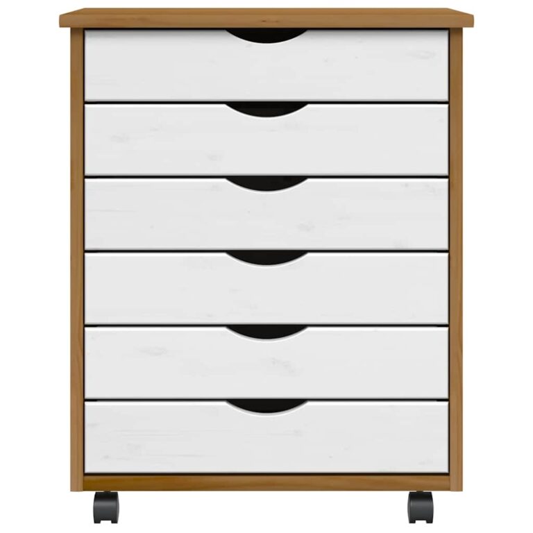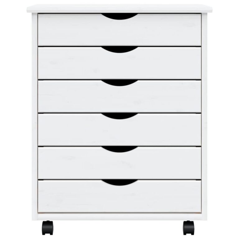 Armoire roulante avec tiroirs MOSS blanc bois de pin solide