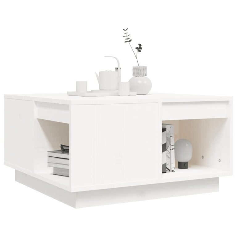 Table basse Blanc 60x61x32,5 cm Bois massif de pin