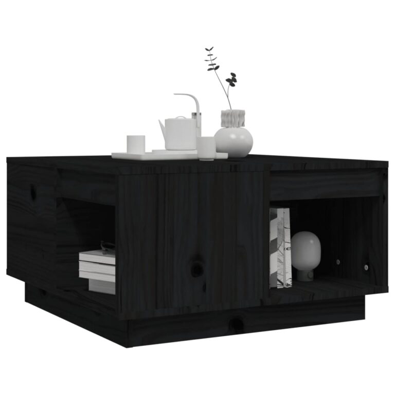 Table basse Noir 60x61x32,5 cm Bois massif de pin