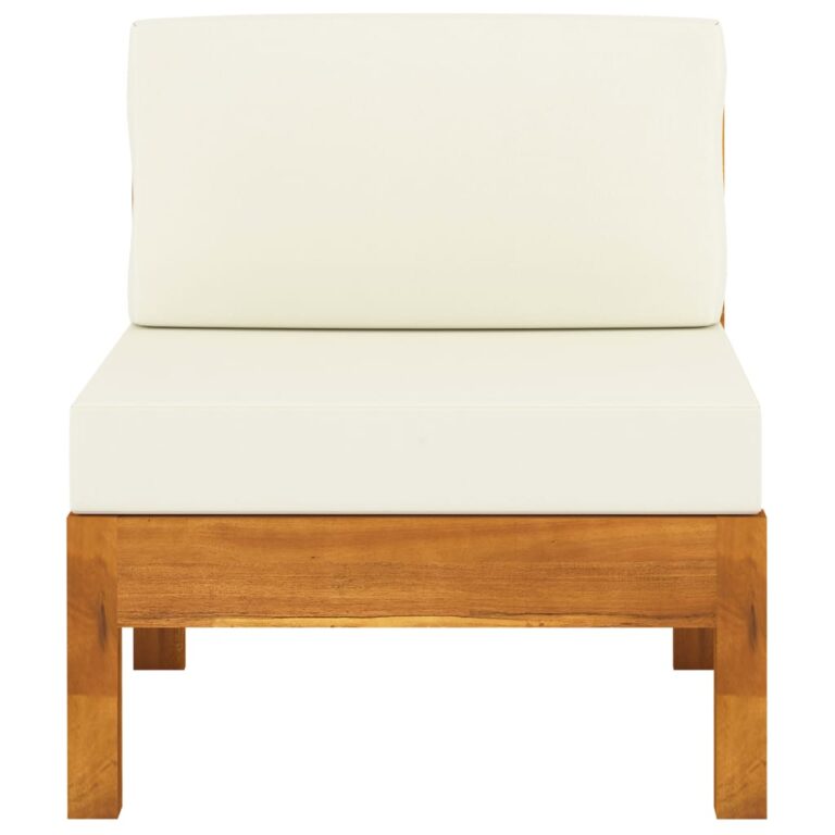 Canapé central avec coussins blanc crème Bois d’acacia solide