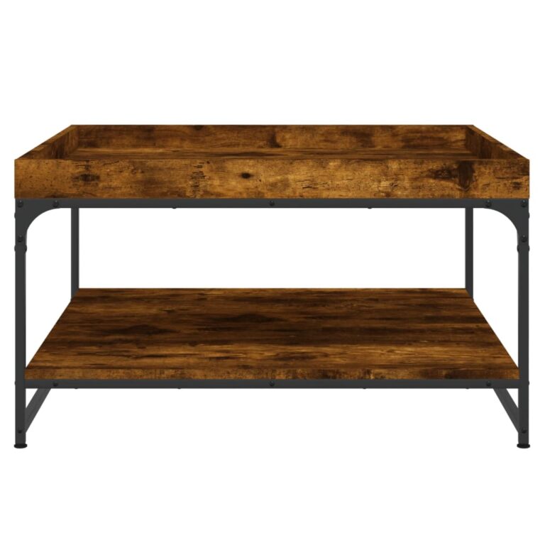Table basse chêne fumé 80x80x45 cm bois d’ingénierie et fer