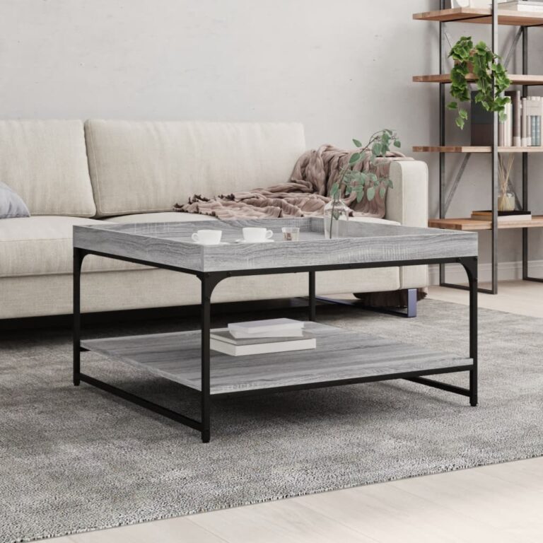 Table basse sonoma gris 80x80x45 cm bois d’ingénierie et métal