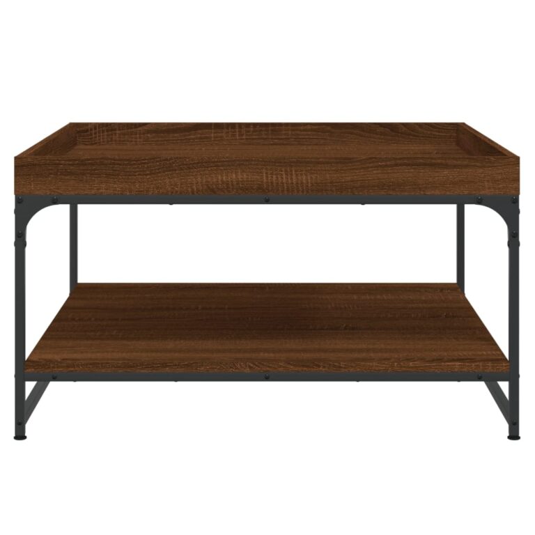 Table basse chêne marron 80x80x45 cm bois d’ingénierie et fer
