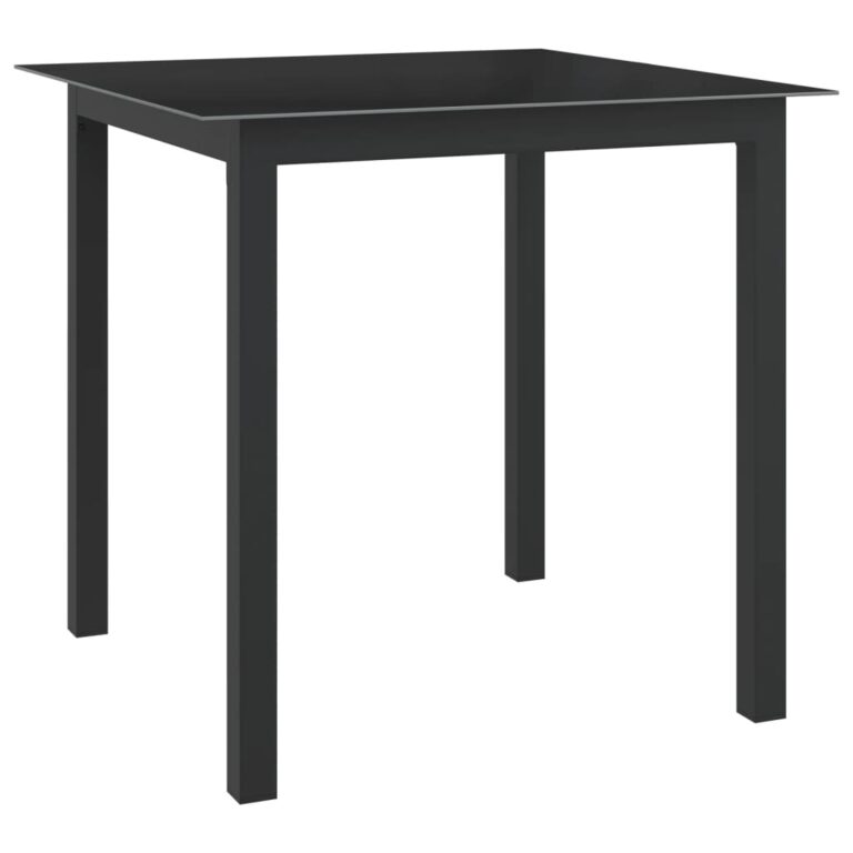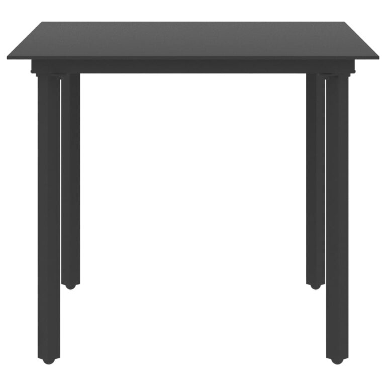 Table à dîner de jardin Noir 80x80x74 cm Acier et verre