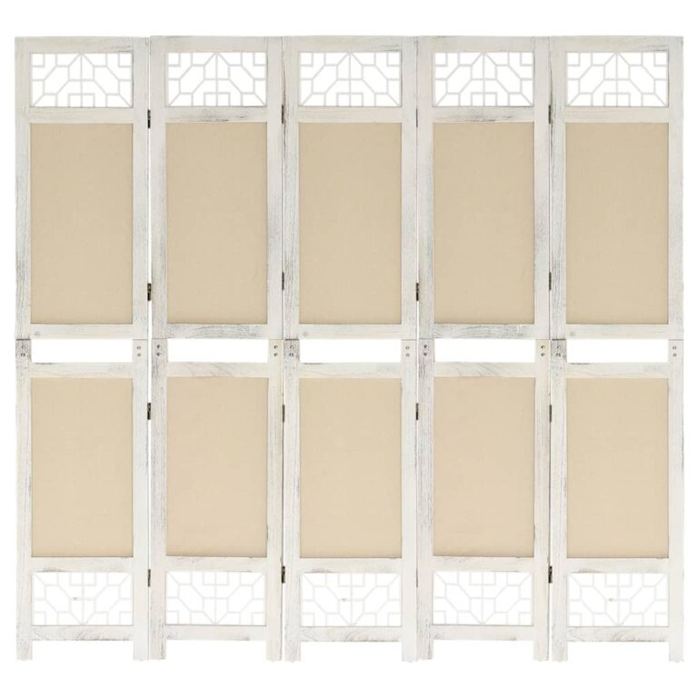 Cloison de séparation 5 panneaux Crème 175×165 cm Tissu