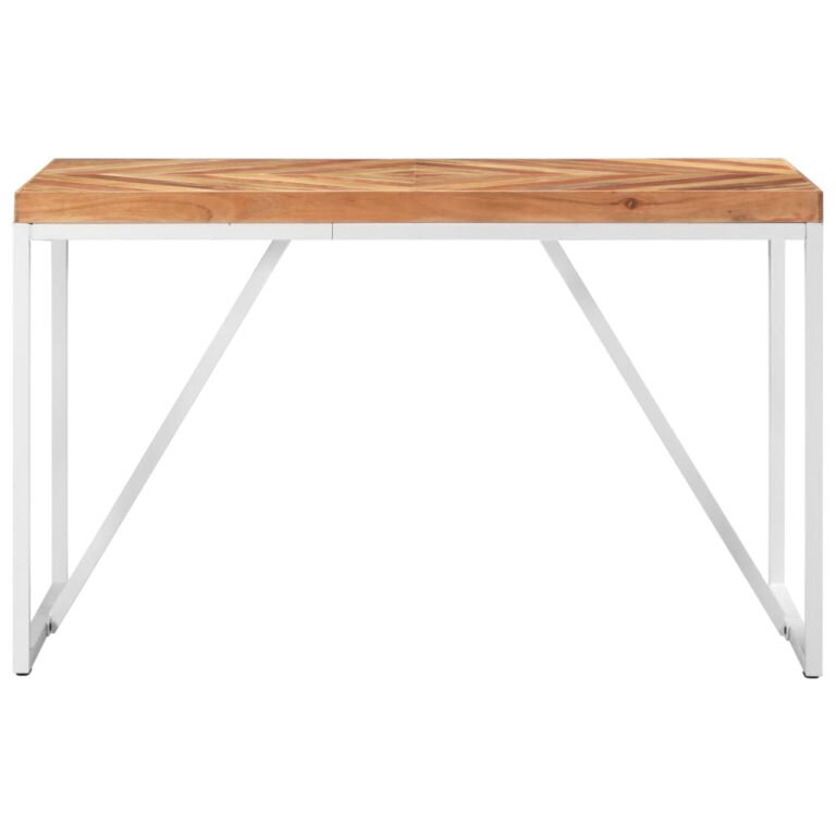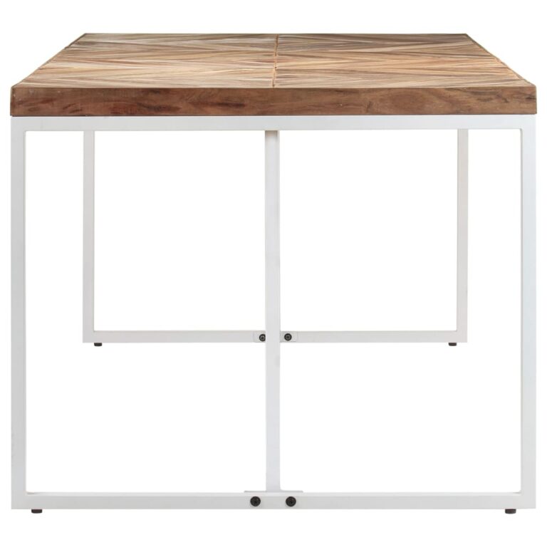 bois massif d'acacia et de manguier avec une finition naturelle, acier avec finition enduite de poudre blanche
