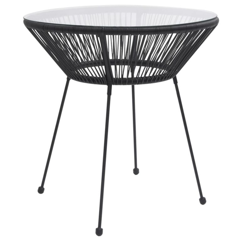 rotin PVC rond, verre trempé, acier enduit de poudre
