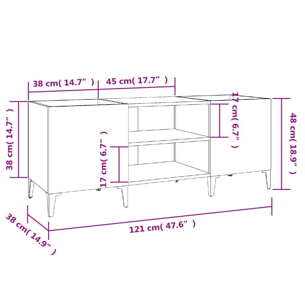 Rangez et exposez vos disques vinyles avec ce meuble à disques pratique et classique. Matériau durable : le bois d’ingénierie est d’une qualité exceptionnelle avec une surface lisse et présente également résistance, stabilité et résistance à l’humidité.Grand espace de rangement : le meuble spacieux du tourne-disque offre un grand espace de rangement pour les disques LP et garde votre collection musicale bien organisée.Dessus robuste : le dessus robuste de l’armoire de rangement en vinyle est idéal pour placer votre tourne-disque ou d’autres appareils électroniques.Fonctions multiples : Ce meuble de rangement pour disques peut également être utilisé comme meuble TV, armoire latérale dans le salon ou meuble de classement dans le bureau.Pieds métalliques : les pieds en métal ajoutent un style industriel à votre intérieur tout en assurant la stabilité.