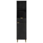 Cette armoire de salle de bain est un excellent choix pour votre salle de bain, la rendant bien rangée et organisée ! Matériau durable : le bois d’ingénierie est d’une qualité exceptionnelle avec une surface lisse et présente également résistance, stabilité et résistance à l’humidité.Grand espace de rangement : le meuble de salle de bain dispose d’un compartiment ouvert et de deux compartiments avec porte, offrant diverses options de rangement et un espace supplémentaire pour ranger des articles dans votre salle de bain.Pieds en bois : les pieds en bois d’eucalyptus massif confèrent au meuble de salle de bain un aspect naturel et agréable tout en assurant la stabilité.Conception flexible : vous pouvez installer la porte à gauche ou à droite selon vos besoins. Attention :Pour éviter qu’il ne soit renversé, ce produit doit être utilisé avec le dispositif de fixation au mur fourni.