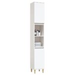 Ce meuble de lavabo est un excellent supplément à votre salle de bain, lui donnant une apparence ordonnée et saisissante ! Matériau durable : le bois d’ingénierie est d’une qualité exceptionnelle avec une surface lisse et se caractérise également par sa solidité, stabilité et résistance à l’humidité.Grand espace de rangement : le meuble de lavabo de salle de bain comprend 4 tiroirs et 1 compartiment avec une porte, offrant diverses options de rangement et un espace supplémentaire pour ranger des objets dans votre salle de bain. Le dessus du meuble de salle de bain est idéal pour placer le lavabo.Structure robuste : les pieds en bois massif d’eucalyptus donnent à l’armoire sous lavabo un aspect naturel et agréable tout en assurant la stabilité.Facile à entretenir : grâce à sa surface lisse, l’armoire se nettoie facilement à l’aide d’un chiffon humide et nécessite peu d’entretien. Attention :Pour éviter qu’il ne bascule, ce produit doit être utilisé avec le dispositif de fixation murale fourni. Bon à savoir :L’évier n’est pas inclus.