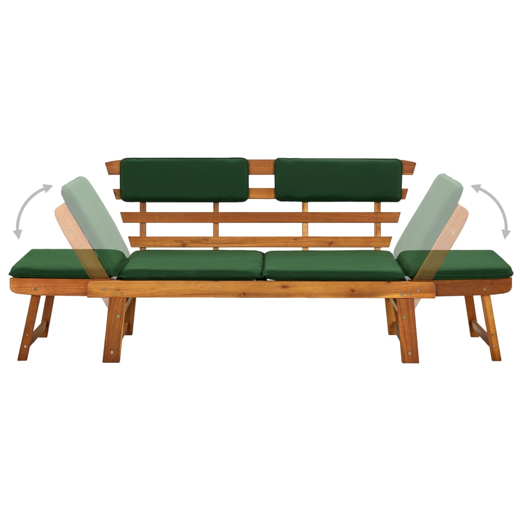 Ce lit de bronzage / banc de jardin d’extérieur en bois combine le style et la fonctionnalité et va devenir le point central de votre jardin ou terrasse. La chaise longue peut être transformée d’un banc en un lit de repos et vice-versa facilement et rapidement grâce aux côtés réglables. Les coussins de dossier et de siège épais et amovibles offrent un confort d’assise et de couchage. Les housses des coussins peuvent être facilement enlevées et lavées. Le banc d’extérieur est fait de bois d’acacia, un bois dur avec des grains denses. Il est résistant aux intempéries et adapté pour une utilisation à l’extérieur.