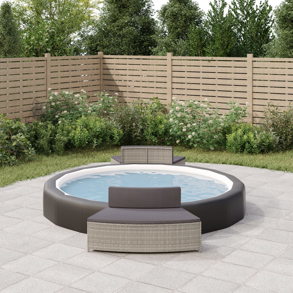 Profitez d’un moment agréable dans votre espace extérieur grâce à ces bancs de spa ! Matériau durable : la résine tressée, également connue sous le nom de rotin poly, résiste aux intempéries et est facile à nettoyer. Elle reste belle à l’extérieur pendant une longue période. Elle est plus économique que d’autres matériaux, tout en offrant une excellente qualité, une commodité et un aspect esthétique.Cadre robuste : le cadre en acier enduit de poudre assure la robustesse et la stabilité de la banquette de spa.Coussin doux et facile à nettoyer : le coussin épais du banc de spa extérieur offre un confort ultime. Grâce à la fermeture éclair, la housse de coussin en tissu est amovible et facile à laver.Expérience confortable : le dossier du banc de spa de jardin vous offre une expérience d’assise confortable. Remarque :Pour que vos meubles d’extérieur restent beaux, nous vous recommandons de les protéger avec une housse imperméable.