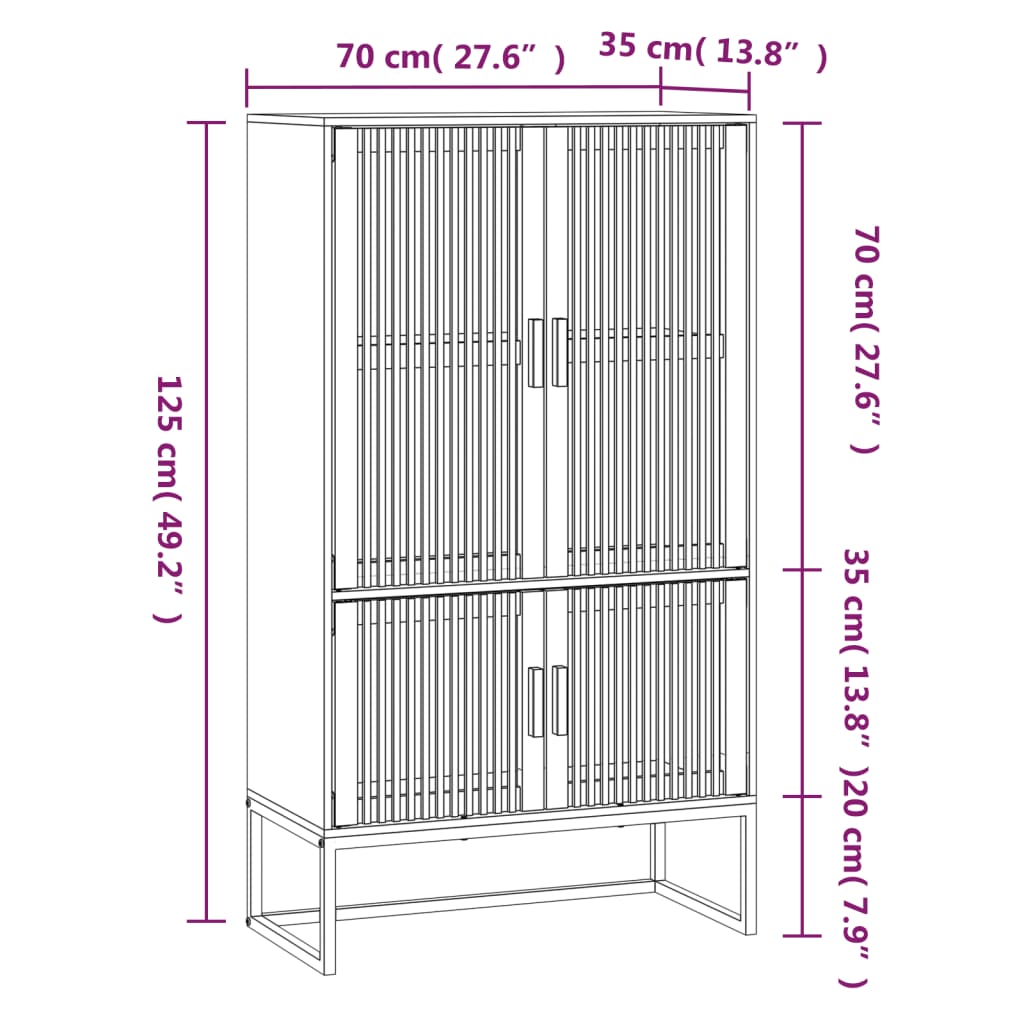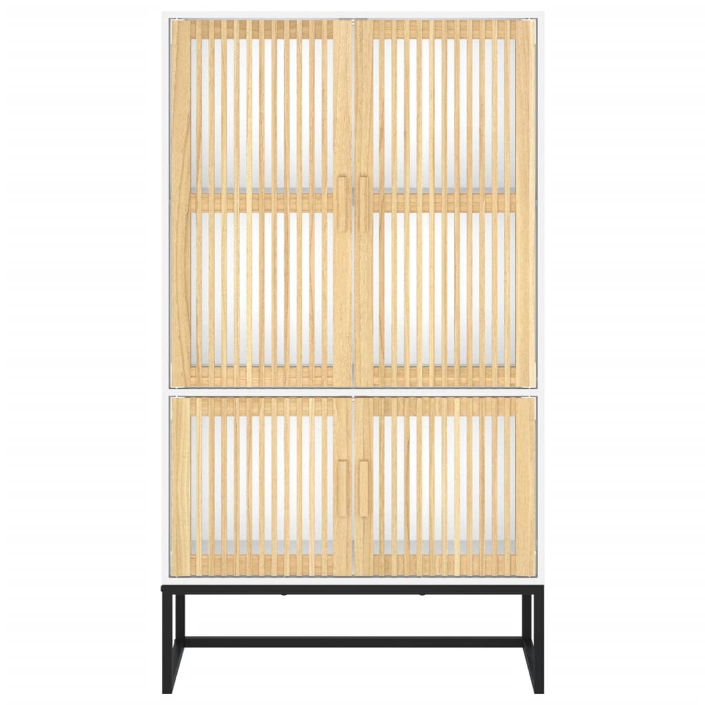 Cherchez-vous un buffet haut de gamme stylé ? Ce buffet haut ajoute un charme unique à votre intérieur existant ! Matériau durable : le bois d’ingénierie est d’une qualité exceptionnelle avec une surface lisse et se caractérise par sa solidité, stabilité et résistance à l’humidité. Les portes en pin massif confèrent à l’armoire un aspect naturel et agréable tout en prolongeant sa durée de vie.Pieds stables : les pieds en fer du buffet assurent sa robustesse et stabilité.Grand espace de rangement : l’armoire de rangement offre un grand espace de rangement pour garder vos différents articles essentiels quotidiens bien organisés et facilement accessibles.Design intemporel : ce buffet chic présente des lignes épurées et simples, ainsi qu’un look minimaliste qui ajoute un style scandinave intemporel à votre décor intérieur actuel. Attention :Afin d’éviter qu’il ne bascule, ce produit doit être utilisé avec le dispositif de fixation murale fourni. Remarque :Chaque produit est livré avec un manuel de montage dans la boîte pour un montage facile.