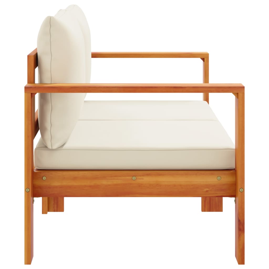 Détendez-vous et profitez de l’extérieur dans ce confortable canapé de jardin en bois 2 places ! Bois d’acacia massif : le bois d’acacia massif est un matériau naturel magnifique. Le bois d’acacia un bois dur tropical, qui est dense, robuste et durable.Expérience d’assise confortable : ce mobilier d’extérieur, doté de coussins épais, offre une expérience d’assise confortable.Housse amovible et lavable : le coussin de siège et le coussin de dossier sont dotés de housses amovibles pour un lavage et un entretien faciles.Conception modulaire : ce meuble d’extérieur a une conception modulaire, ce qui le rend complètement flexible et facile à déplacer, afin que vous puissiez créer un agencement de meubles d’extérieur personnalisé. Bon à savoir :Pour que vos meubles d’extérieur restent beaux, nous vous recommandons de les protéger avec une housse imperméable.Les housses de coussin sont lavables à la main et non en machine.