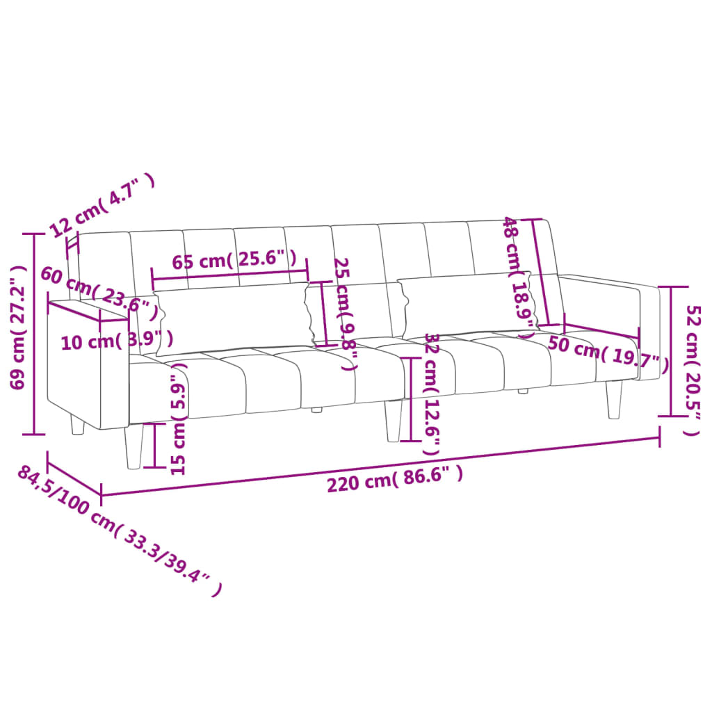 • Dimensions totales : 220 x 84,5 x 69 cm (L x l x H)