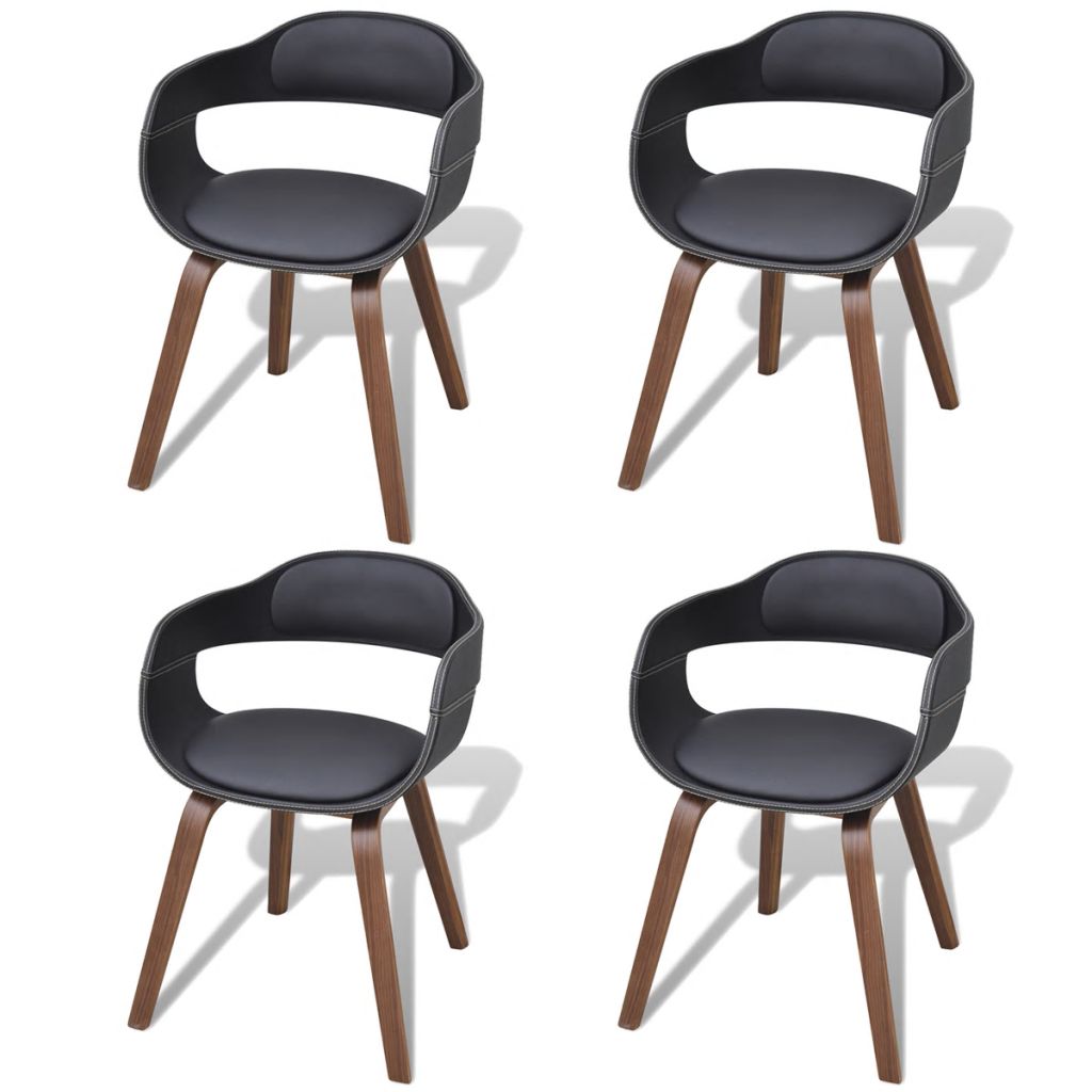Cet ensemble de chaises à manger avec accoudoirs, revêtu de cuir synthétique luxueux de haute qualité, est esthétiquement conçu et de façon ergonomique pour ajouter une touche décorative et confortable à votre salle à manger. Grâce à l’assise et au dossier rembourrés de mousse, nos chaises offrent le plus grand confort d’assise. Le cadre et les pieds en bois de noyer de haute qualité rendent les chaises robustes et durables et ajoutent à son aspect élégant. La livraison comprend 4 chaises de salle à manger.