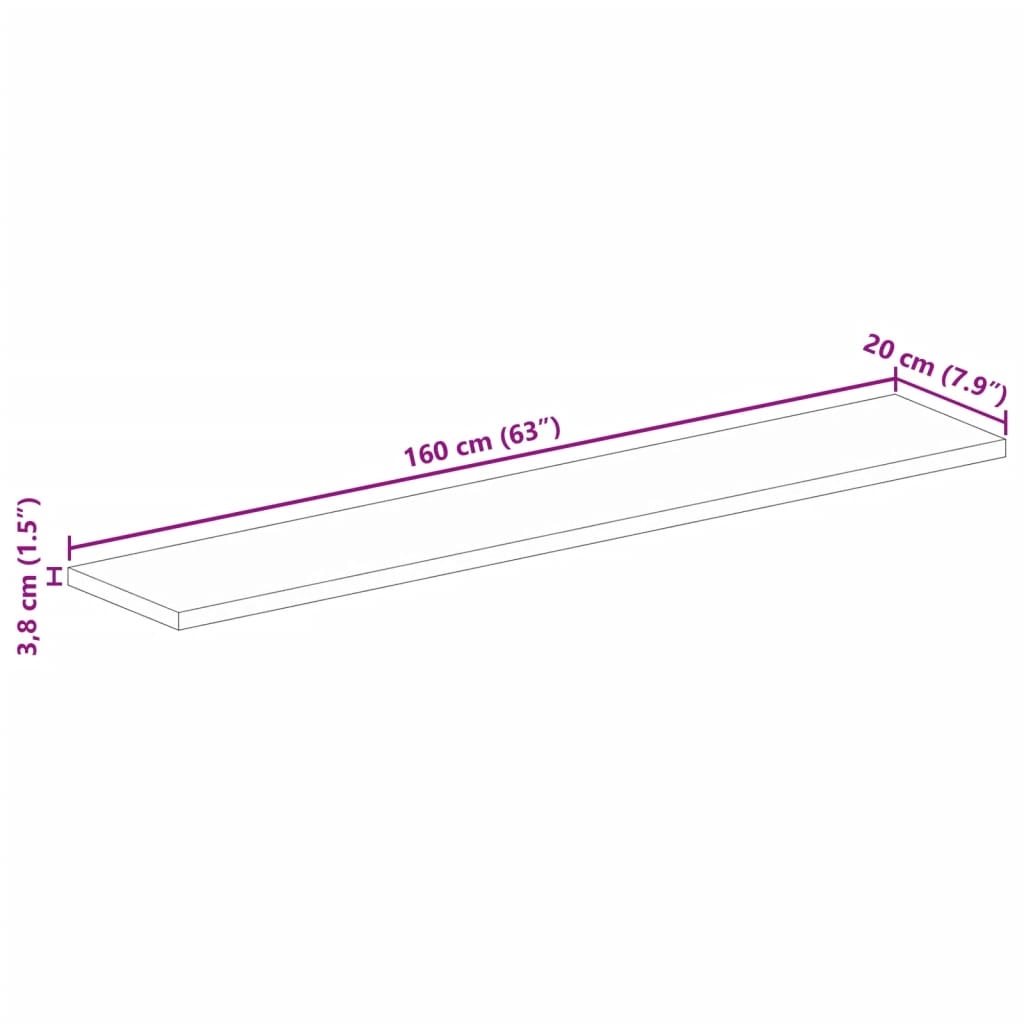Dessus de table 160x20x3,8cm rectangulaire bois massif manguier