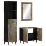 Cet ensemble d’armoires de salle de bain attrayant, avec un grand espace de rangement, présente un design élégant mais pratique. Construction robuste : l’acier revêtu de poudre et le bois d’ingénierie garantissent une construction robuste et offrent un support solide à vos articles.Grand espace de rangement : ce meuble de salle de bain offre un grand espace de rangement pour accueillir facilement vos articles de toilette et articles de bain essentiels tels que savons, shampoing, dentifrice, etc.Étagère de rangement supplémentaire : le miroir de bain est doté d’une étagère inférieure qui offre un espace de rangement supplémentaire pour les accessoires de salle de bains tels que les brosses à dents, les nettoyants pour le visage, les rasoirs, etc.Image claire : la face en verre du miroir offre une réflexion fine et non déformée. Il convient donc pour se maquiller, se raser ou vérifier son costume avant de sortir.Pieds réglables : les pieds réglables munis de coussinets en plastique maintiennent l’armoire de salle de bain en équilibre sur un sol inégal et augmentent sa stabilité. Attention :Pour éviter qu’il ne bascule, ce produit doit être utilisé avec le dispositif de fixation murale fourni. Bon à savoir :Les vis et les chevilles pour l’intérieur du mur ne sont pas incluses. Nous vous conseillons de trouver et d’utiliser des vis et des chevilles adaptées spécifiquement à vos murs. Si vous n’êtes pas sûr, vous pouvez consulter un professionnel. Veuillez lire et suivre chaque étape des instructions.