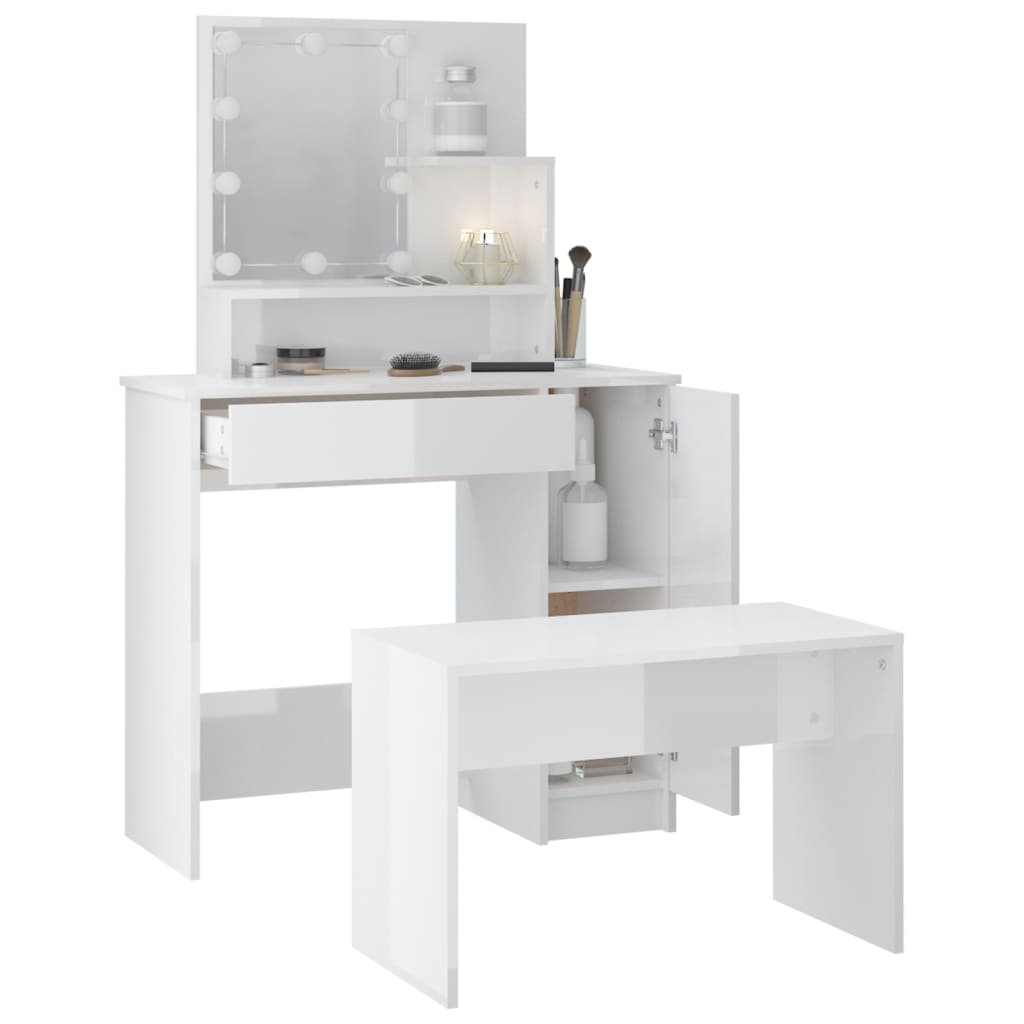 L’ensemble de coiffeuse tendance donne à votre chambre à coucher un look intemporel et raffiné. L’ensemble de coiffeuse avec LED est un supplément parfait au décor de votre chambre à coucher et garde vos cosmétiques à portée de main ! Matériau stable : le bois d’ingénierie est d’une qualité exceptionnelle avec une surface lisse et présente également résistance, stabilité et résistance à l’humidité.Miroir utilitaire : la coiffeuse avec miroir est parfaite pour votre routine beauté quotidienne. Le miroir vous permet de prendre soin de la peau de votre visage et de vous maquiller aussi !Grand espace de rangement : la coiffeuse avec tabouret offre suffisamment d’espace pour un accès facile à votre maquillage, vos bijoux et vos essentiels du quotidien.Lumière LED : la coiffeuse dispose également d’ampoules LED avec USB, qui sont faciles à changer de mode du blanc chaud au blanc froid. Les ampoules LED autour du miroir illuminent également votre beauté.Applications larges : cet ensemble de table de coiffeuse convient à divers endroits, telles que votre chambre à coucher, vestiaire et toute autre pièce dans laquelle vous souhaitez le placer. Avertissement :Afin d’éviter qu’il ne bascule, ce produit doit être utilisé avec le dispositif de fixation murale fourni. Remarque :Chaque produit est livré avec un manuel de montage dans la boîte pour un montage facile.