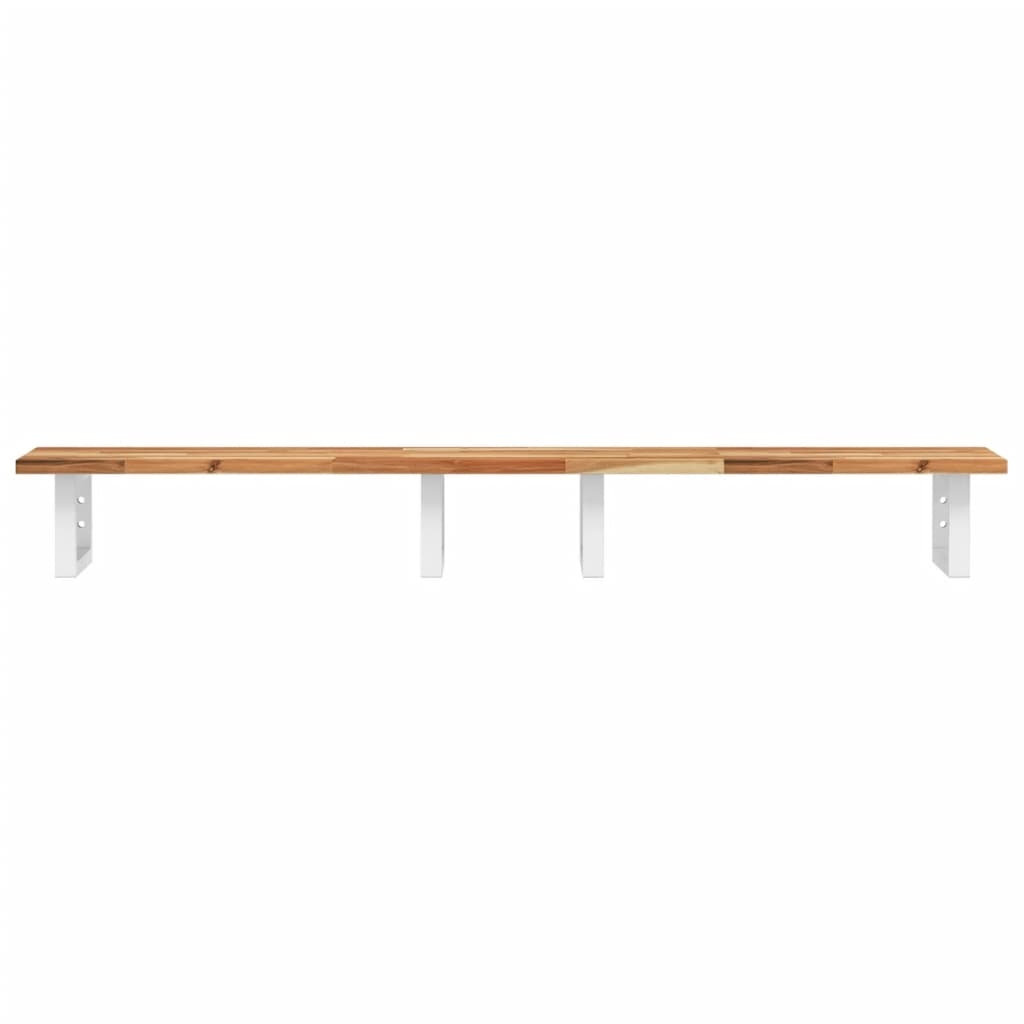 L’étagère murale pour vasque se fixe solidement au mur, offrant une solution élégante et peu encombrante pour votre salle de bains. Robuste et durable : cette étagère de lavabo est associée à une structure en acier et à un plateau en bois massif d’acacia, ce qui la rend robuste, stable et durable.Gain de place : l’étagère flottante du lavabo offre suffisamment d’espace pour ranger les crèmes et les petits articles. Grâce à la forme rectangulaire, vous pouvez accrocher des serviettes ou d’autres choses sur le support pour gagner de la place.Facile à utiliser : le plan de travail n’est pas percé, ce qui permet d’installer la vasque à gauche, à droite ou au centre, selon les besoins de la pièce. Grâce aux trous pré-percés dans le support, il peut être facilement assemblé avec le plateau de table et fixé au mur.Multifonctionnel : grâce à son design moderne, il offre un espace supplémentaire pour différents types de salles de bains. Bon à savoir :Les vis ne sont pas incluses, vous pouvez les acheter séparément en fonction des informations fournies ci-dessous.Fixation murale : vis d’expansion M8 de 2 pcs par supportDessus en bois : vis M5x18 (T=2) de 2 pcs ou vis M5x20 (T=2,5/4cm) de 2 pcs par support.