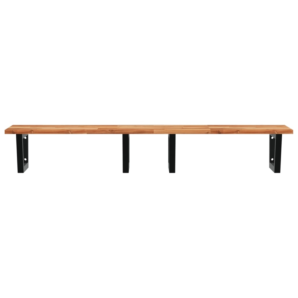 L’étagère murale pour vasque se fixe solidement au mur, offrant une solution élégante et peu encombrante pour votre salle de bains. Robuste et durable : cette étagère de lavabo est associée à une structure en acier et à un plateau en bois massif d’acacia, ce qui la rend robuste, stable et durable.Gain de place : l’étagère "flottante" du lavabo offre suffisamment d’espace pour ranger les crèmes et les petits articles. Grâce à la forme de trapèze, vous pouvez accrocher des serviettes ou d’autres choses sur le support pour gagner de la place.Facile à utiliser : le plan de travail n’est pas percé, ce qui permet d’installer la vasque à gauche, à droite ou au centre, selon les besoins de la pièce. Grâce aux trous pré-percés dans le support, il peut être facilement assemblé avec le plateau de table et fixé au mur.Multifonctionnel : grâce à son design moderne, il offre un espace supplémentaire pour différents types de salles de bains. Bon à savoir :Les vis ne sont pas incluses, vous pouvez les acheter séparément en fonction des informations fournies ci-dessous.Fixation murale : vis d’expansion M8 de 2 pcs par supportDessus en bois : vis M5x18 (T=2) de 2 pcs ou vis M5x20 (T=2,5/4cm) de 2 pcs par support.