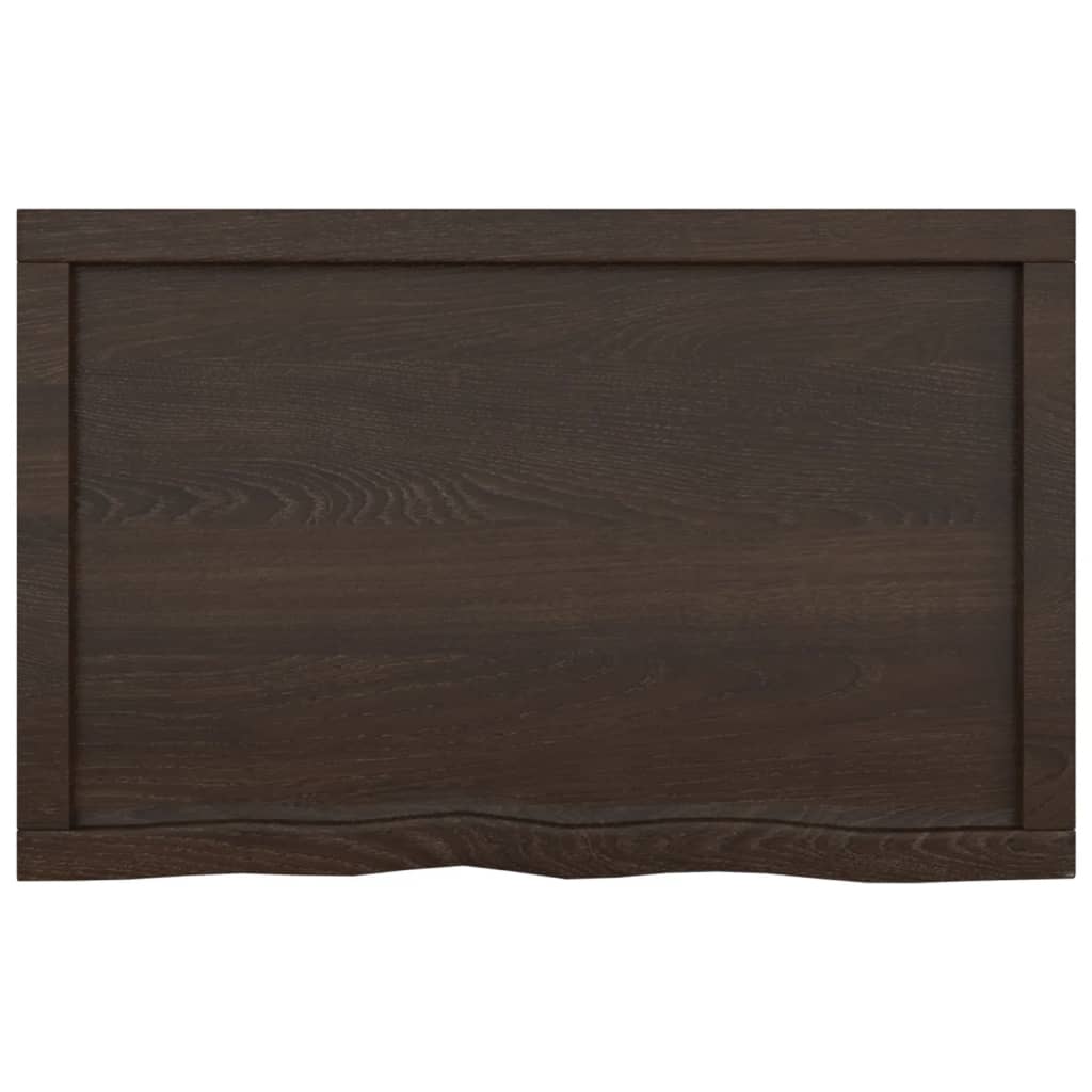 Avez-vous besoin de plus de possibilités de stockage mais n’avez pas d’espace ? Cette étagère murale de style rustique est la solution idéale. Construction durable : l’étagère murale est fabriquée en bois de chêne massif, un matériau naturel magnifique. Le bois de chêne a une couleur marron moyen et un grain dense, ce qui contribue à son aspect unique.Applications polyvalentes : en plus d’une étagère, cette étagère de rangement peut être combinée avec différentes bases selon vos besoins. Elle peut être utilisée comme dessus de salle de bain, tablette d’armoire, étagère de bureau, dessus de table, etc.Surface traitée : l’étagère en bois a été traitée avec une peinture foncée. Elle est donc prête à l’emploi car une finition supplémentaire n’est pas nécessaire.Fabriquée à la main avec un bord vif : cette étagère est fabriquée à la main avec un bord vif. Les nœuds, les fissures, les formes légèrement incurvées et les tons de couleur font partie du bois de chêne, ce qui confère à chaque étagère un caractère unique. La livraison est aléatoire, ce qui garantit l’exclusivité et l’individualité de votre produit. Bon à savoir :En tant que produit naturel, le bois peut présenter des nœuds et des imperfections que nous remplissons avec des garnitures noires pour garantir un aspect lisse.