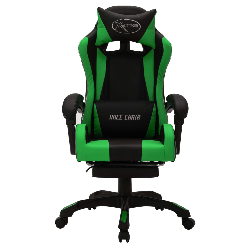 Ce fauteuil de jeux vidéo distinctif et de luxe offre un endroit extrêmement confortable pour le jeu ou le travail. Cette chaise de jeu est recouverte de similicuir, ce qui la rend facile à nettoyer. La chaise inclinable a un repose-pied rétractable qui peut être rangé sous le siège lorsqu’il n’est pas utilisé. Le coussin de tête et le coussin de taille bien rembourrés fournis offrent un confort supplémentaire pendant votre journée de travail bien remplie. Avec le mécanisme de vérin à gaz, cette chaise de bureau est réglable en hauteur. Elle est également réglable en position inclinée, donc si vous avez envie de faire une sieste, placez simplement le dossier en position entièrement inclinée. De plus, le pivotement à 360 degrés et la conception à 5 roulettes la rendent facile à déplacer. Le bord du dossier est équipé de lumières LED, vous offrant une meilleure ambiance de jeu. Vous pouvez facilement changer la couleur et les modes de clignotement des lumières grâce à une télécommande.
