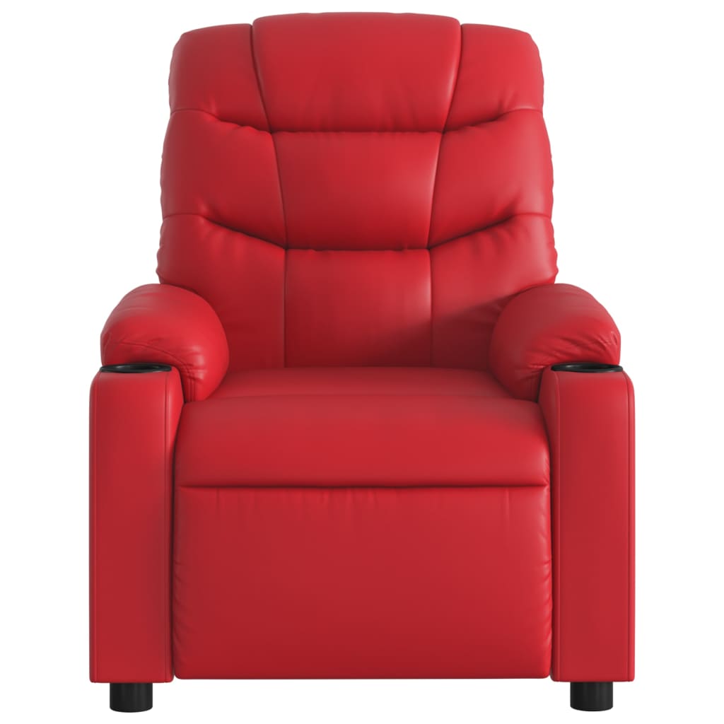 Asseyez-vous et détendez-vous dans ce fauteuil inclinable de massage électrique très confortable ! Fonction d’inclinaison électrique : ce fauteuil inclinable est équipé d’un moteur électrique qui permet de régler automatiquement le repose-pied et le dossier dans n’importe quelle position, selon votre confort, en appuyant simplement sur le bouton situé sur le côté du fauteuil. Cette fonction permet une inclinaison maximale de 135 degrés. En outre, le dossier peut revenir automatiquement à sa position d’origine par une simple pression sur le bouton.Fonction de vibration : les 6 points de massage vous permettent de faire l’expérience d’un massage mieux ciblé. De plus, la télécommande incluse vous permet de choisir différents programmes de massage. La fonction de massage est alimentée par le connecteur USB qui nécessite une source d’alimentation USB certifiée de 5 V (non fournie).Expérience de siège confortable : le siège, le dossier et les larges accoudoirs rembourrés épais recouverts de similicuir procurent une sensation confortable et chaleureuse, vous faisant vous sentir enlacé lorsque vous êtes assis. Le simili cuir est un matériau très résistant. Il est résistant aux taches, ce qui le rend facile à nettoyer avec un chiffon humide. La surface lisse donne également un aspect luxueux et la beauté du cuir véritable.Poche latérale pratique : ce fauteuil est doté d’une poche latérale pour ranger votre télécommande ou garder vos objets essentiels à portée de main.Cadre solide et stable : le cadre en bois et en métal offre une structure solide et une grande stabilité. Ce fauteuil inclinable est confortable et durable.