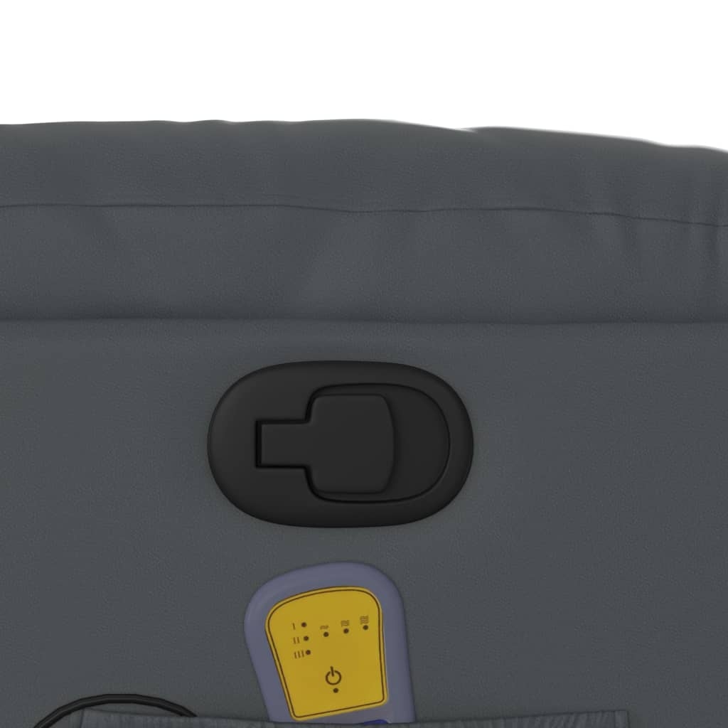 Asseyez-vous et détendez-vous dans ce fauteuil inclinable de massage très confortable ! Fonction d’inclinaison manuelle : ce fauteuil inclinable est doté d’une poignée du côté droit. Vous pouvez régler manuellement le repose-pieds et le dossier dans n’importe quelle position selon votre confort en tirant simplement sur la poignée. Cette fonction permet une inclinaison maximale de 135 degrés. De plus, le dossier peut revenir rapidement à sa position d’origine en tirant simplement sur la poignée.Fonction de vibration : les 6 points de massage vous permettent de faire l’expérience d’un massage mieux ciblé. De plus, la télécommande incluse vous permet de choisir différents programmes de massage. La fonction de massage est alimentée par le connecteur USB, mais la source d’alimentation USB 5V certifiée n’est pas incluse.Expérience de siège confortable : le siège, le dossier et les larges accoudoirs rembourrés épais recouverts de similicuir procurent une sensation confortable, vous faisant vous sentir enlacé lorsque vous êtes assis. Le similicuir est un matériau très résistant. Il est résistant aux taches, ce qui le rend facile à nettoyer avec un chiffon humide. La surface lisse donne également un aspect luxueux et la beauté du cuir véritable.Porte-gobelets et poche latérale pratiques : ce fauteuil dispose de deux porte-gobelets pratiques pour vos boissons et d’une poche latérale pour votre télécommande ou pour garder vos objets essentiels à portée de main.Cadre solide et stable : le cadre en bois et en métal offre une structure solide et une grande stabilité. Ce fauteuil inclinable est confortable et durable.