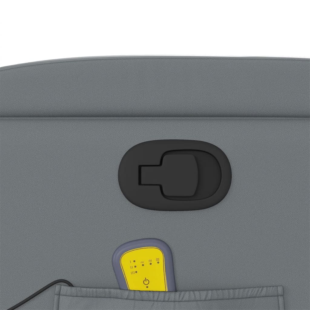 Asseyez-vous et détendez-vous dans ce fauteuil inclinable de massage très confortable ! Fonction d’inclinaison manuelle : ce fauteuil inclinable est doté d’une poignée du côté droit. Vous pouvez régler manuellement le repose-pieds et le dossier dans n’importe quelle position selon votre confort en tirant simplement sur la poignée. Cette fonction permet une inclinaison maximale de 135 degrés. De plus, le dossier peut revenir rapidement à sa position d’origine en tirant simplement sur la poignée.Fonction de vibration : les 6 points de massage vous permettent de faire l’expérience d’un massage mieux ciblé. De plus, la télécommande incluse vous permet de choisir différents programmes de massage. La fonction de massage est alimentée par le connecteur USB, mais la source d’alimentation USB 5V certifiée n’est pas incluse.Expérience de siège confortable : le siège, le dossier et les larges accoudoirs rembourrés épais recouverts de similicuir procurent une sensation confortable, vous faisant vous sentir enlacé lorsque vous êtes assis. Le similicuir est un matériau très résistant. Il est résistant aux taches, ce qui le rend facile à nettoyer avec un chiffon humide. La surface lisse donne également un aspect luxueux et la beauté du cuir véritable.Porte-gobelets et poche latérale pratiques : ce fauteuil dispose de deux porte-gobelets pratiques pour vos boissons et d’une poche latérale pour votre télécommande ou pour garder vos objets essentiels à portée de main.Cadre solide et stable : le cadre en bois et en métal offre une structure solide et une grande stabilité. Ce fauteuil inclinable est confortable et durable.