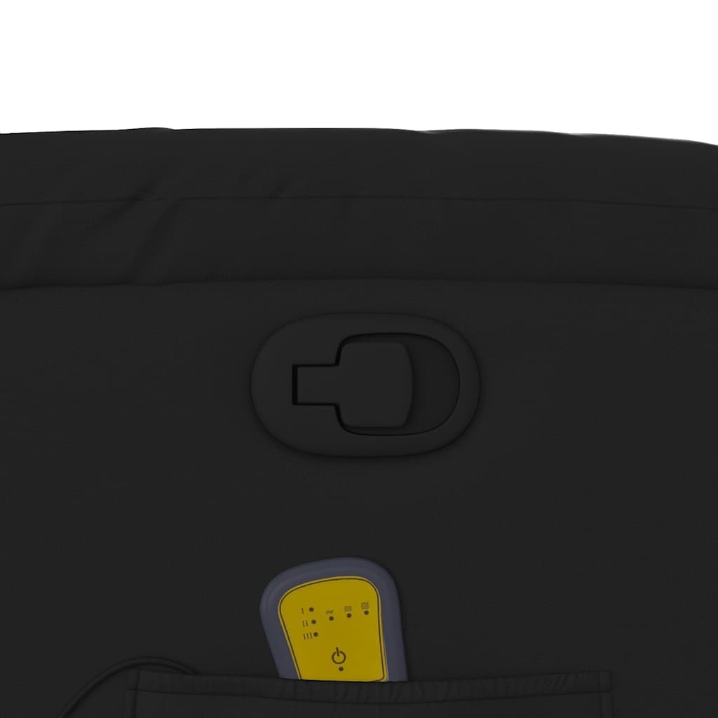 Asseyez-vous et détendez-vous dans ce fauteuil inclinable de massage très confortable ! Fonction d’inclinaison manuelle : ce fauteuil inclinable est doté d’une poignée du côté droit. Vous pouvez régler manuellement le repose-pieds et le dossier dans n’importe quelle position selon votre confort en tirant simplement sur la poignée. Cette fonction permet une inclinaison maximale de 135 degrés. De plus, le dossier peut revenir rapidement à sa position d’origine en tirant simplement sur la poignée.Fonction de vibration : les 6 points de massage vous permettent de faire l’expérience d’un massage mieux ciblé. De plus, la télécommande incluse vous permet de choisir différents programmes de massage. La fonction de massage est alimentée par le connecteur USB, mais la source d’alimentation USB 5V certifiée n’est pas incluse.Expérience de siège confortable : le siège, le dossier et les larges accoudoirs rembourrés épais recouverts de similicuir procurent une sensation confortable, vous faisant vous sentir enlacé lorsque vous êtes assis. Le similicuir est un matériau très résistant. Il est résistant aux taches, ce qui le rend facile à nettoyer avec un chiffon humide. La surface lisse donne également un aspect luxueux et la beauté du cuir véritable.Poche latérale pratique : ce fauteuil est doté d’une poche latérale pour ranger votre télécommande ou garder vos objets essentiels à portée de main.Cadre solide et stable : le cadre en bois et en métal offre une structure solide et une grande stabilité. Ce fauteuil inclinable est confortable et durable.