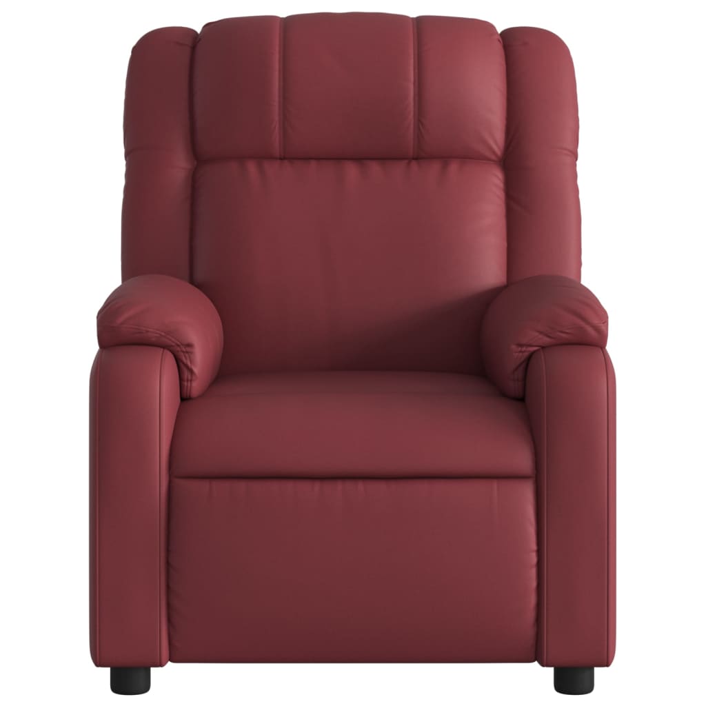 Asseyez-vous et détendez-vous dans ce fauteuil inclinable de massage très confortable ! Fonction d’inclinaison manuelle : ce fauteuil inclinable est doté d’une poignée du côté droit. Vous pouvez régler manuellement le repose-pieds et le dossier dans n’importe quelle position selon votre confort en tirant simplement sur la poignée. Cette fonction permet une inclinaison maximale de 135 degrés. De plus, le dossier peut revenir rapidement à sa position d’origine en tirant simplement sur la poignée.Fonction de vibration : les 6 points de massage vous permettent de faire l’expérience d’un massage mieux ciblé. De plus, la télécommande incluse vous permet de choisir différents programmes de massage. La fonction de massage est alimentée par le connecteur USB, mais la source d’alimentation USB 5V certifiée n’est pas incluse.Expérience de siège confortable : le siège, le dossier et les larges accoudoirs rembourrés épais recouverts de similicuir procurent une sensation confortable, vous faisant vous sentir enlacé lorsque vous êtes assis. Le similicuir est un matériau très résistant. Il est résistant aux taches, ce qui le rend facile à nettoyer avec un chiffon humide. La surface lisse donne également un aspect luxueux et la beauté du cuir véritable.Poche latérale pratique : ce fauteuil est doté d’une poche latérale pour ranger votre télécommande ou garder vos objets essentiels à portée de main.Cadre solide et stable : le cadre en bois et en métal offre une structure solide et une grande stabilité. Ce fauteuil inclinable est confortable et durable.