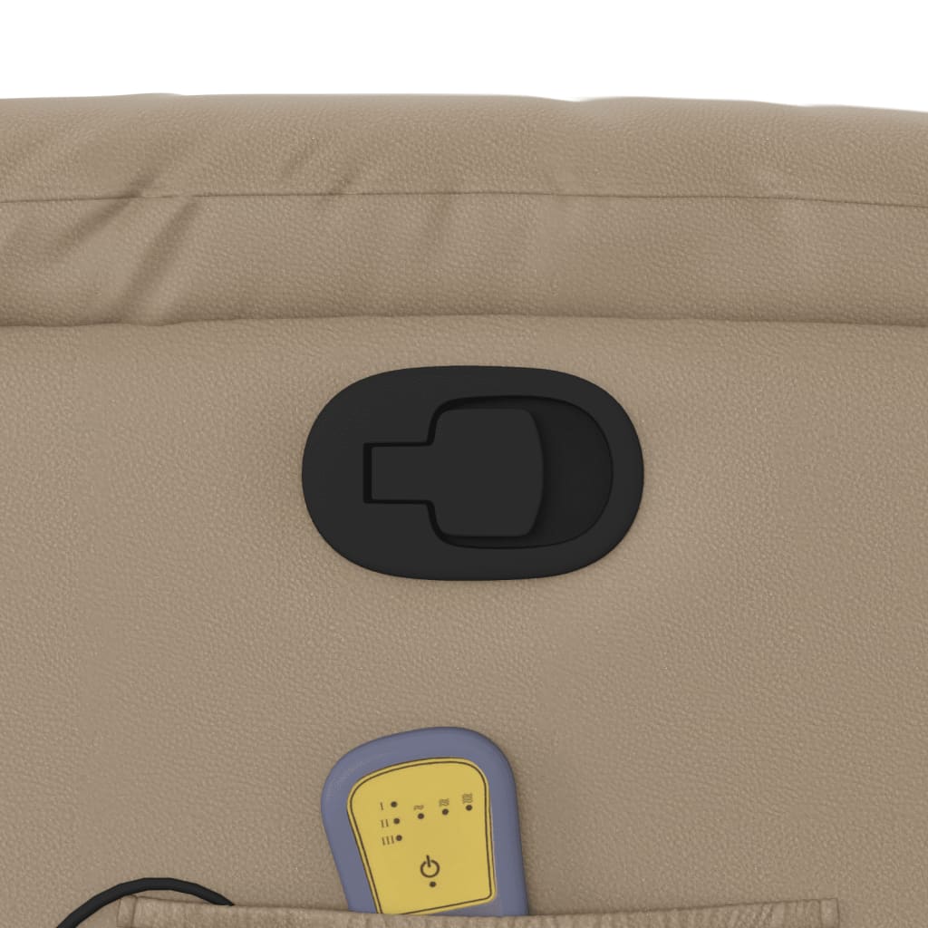 Asseyez-vous et détendez-vous dans ce fauteuil inclinable de massage très confortable ! Fonction de levage électrique : ce fauteuil inclinable pour personnes âgées est équipé d’un moteur électrique pour la fonction de levage. Grâce à la fonction qui pousse toute la chaise vers le haut, vous pouvez facilement vous tenir debout sans stresser votre dos et vos genoux en appuyant simplement sur le bouton.Fonction d’inclinaison manuelle : ce fauteuil inclinable est doté d’une poignée du côté droit. Vous pouvez régler manuellement le repose-pieds et le dossier dans n’importe quelle position selon votre confort en tirant simplement sur la poignée. Cette fonction permet une inclinaison maximale de 135 degrés. De plus, le dossier peut revenir rapidement à sa position d’origine en tirant simplement sur la poignée.Fonction de vibration : les 6 points de massage vous permettent de faire l’expérience d’un massage mieux ciblé. De plus, la télécommande incluse vous permet de choisir différents programmes de massage. La fonction de massage est alimentée par le connecteur USB qui nécessite une source d’alimentation USB certifiée de 5 V (non fournie).Expérience de siège confortable : le siège, le dossier et les larges accoudoirs rembourrés épais recouverts de similicuir procurent une sensation confortable et chaleureuse, vous faisant vous sentir enlacé lorsque vous êtes assis. Le simili cuir est un matériau très résistant. Il est résistant aux taches, ce qui le rend facile à nettoyer avec un chiffon humide. La surface lisse donne également un aspect luxueux et la beauté du cuir véritable.Poche latérale pratique : ce fauteuil est doté d’une poche latérale pour ranger votre télécommande ou garder vos objets essentiels à portée de main.Cadre solide et stable : le cadre en bois et en métal offre une structure solide et une grande stabilité. Ce fauteuil inclinable est confortable et durable.