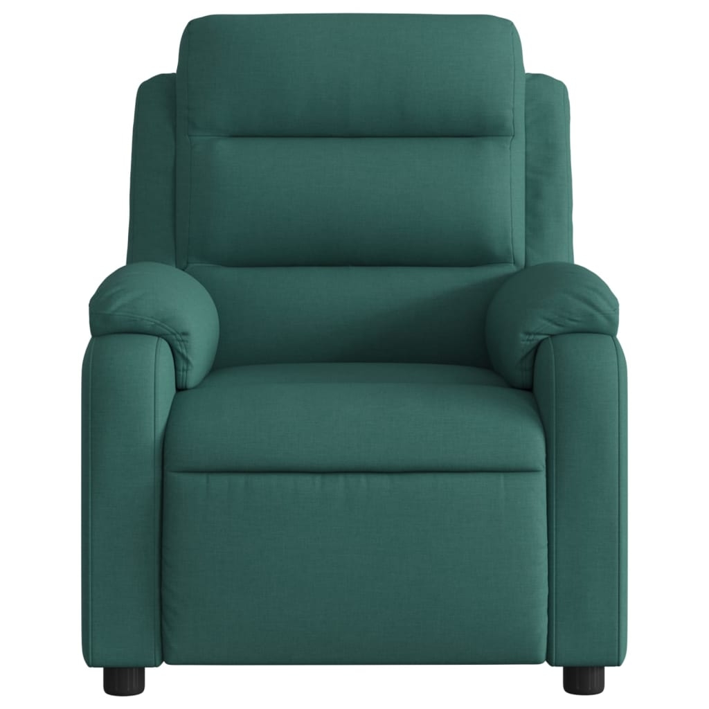 Asseyez-vous et détendez-vous dans ce fauteuil inclinable de massage très confortable ! Fonction d’inclinaison manuelle : ce fauteuil inclinable est doté d’une poignée du côté droit. Vous pouvez régler manuellement le repose-pieds et le dossier dans n’importe quelle position selon votre confort en tirant simplement sur la poignée. Cette fonction permet une inclinaison maximale de 135 degrés. De plus, le dossier peut revenir rapidement à sa position d’origine en tirant simplement sur la poignée.Fonction de vibration : les 6 points de massage vous permettent de faire l’expérience d’un massage mieux ciblé. De plus, la télécommande incluse vous permet de choisir différents programmes de massage. La fonction de massage est alimentée par le connecteur USB, mais la source d’alimentation USB 5V certifiée n’est pas incluse.Expérience d’assise confortable : le siège, le dossier et les larges accoudoirs bien rembourrés recouverts de tissu procurent une sensation confortable et chaleureuse, vous permettant de vous sentir enveloppé lorsque vous êtes assis. Le tissu présente un aspect simple et épuré et est respirant et durable.Poche latérale pratique : ce fauteuil est doté d’une poche latérale pour ranger votre télécommande ou garder vos objets essentiels à portée de main.Cadre solide et stable : le cadre en bois et en métal offre une structure solide et une grande stabilité. Ce fauteuil inclinable est confortable et durable.
