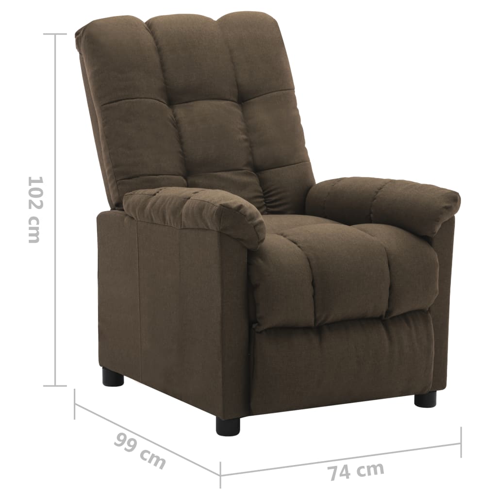 Asseyez-vous et détendez-vous dans ce fauteuil inclinable électrique très confortable ! Fonction d’inclinaison électrique : le fauteuil inclinable est équipé d’un moteur électrique pour la fonction d’inclinaison. Il offre 3 positions d’inclinaison et vous pouvez facilement régler le dossier et le repose-pied à l’aide de la commande manuelle à 2 boutons incluse, en fonction de votre confort.Expérience d’assise confortable : le siège, le dossier et les larges accoudoirs rembourrés épais recouverts de tissu procurent une sensation confortable et chaleureuse, vous permettant de vous sentir enveloppé lorsque vous êtes assis. Le tissu présente un aspect simple et épuré, et est respirant et durable.Cadre solide et stable : le cadre en bois et en métal offre une structure solide et une grande stabilité. Ce fauteuil inclinable est confortable et durable.