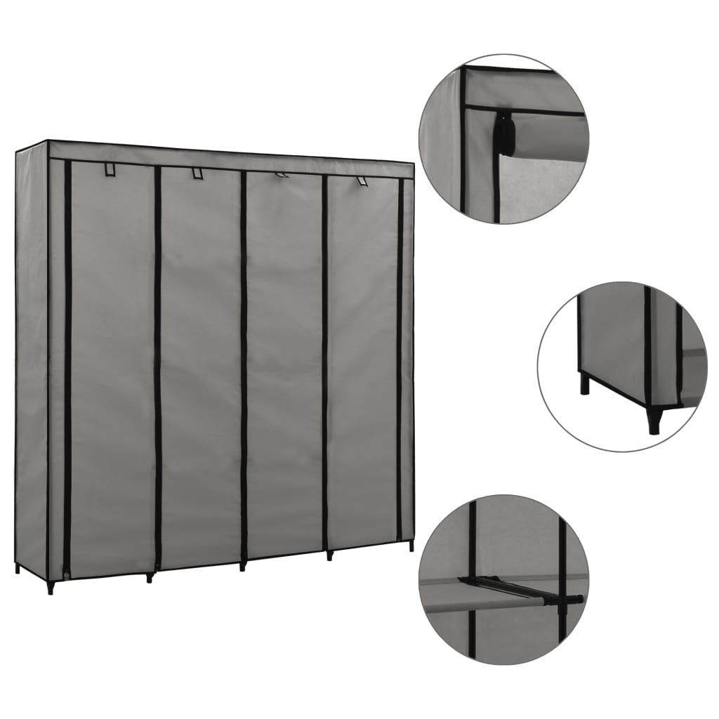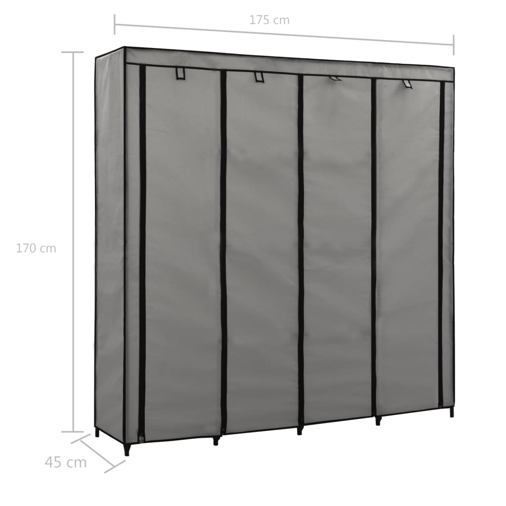 Cette garde-robe pratique constitue une solution de rangement idéale pour vos vêtements et vos chaussures. Elle se caractérise par un cadre en fer robuste, rendant la garde-robe facile à déplacer et extrêmement durable. De plus, elle dispose de quatre compartiments, offrant suffisamment d’espace pour garder vos sacs, chaussures ou petits objets rangés et à portée de main. La housse en tissu avec fermeture à glissière protégera vos vêtements de la saleté et de la poussière.