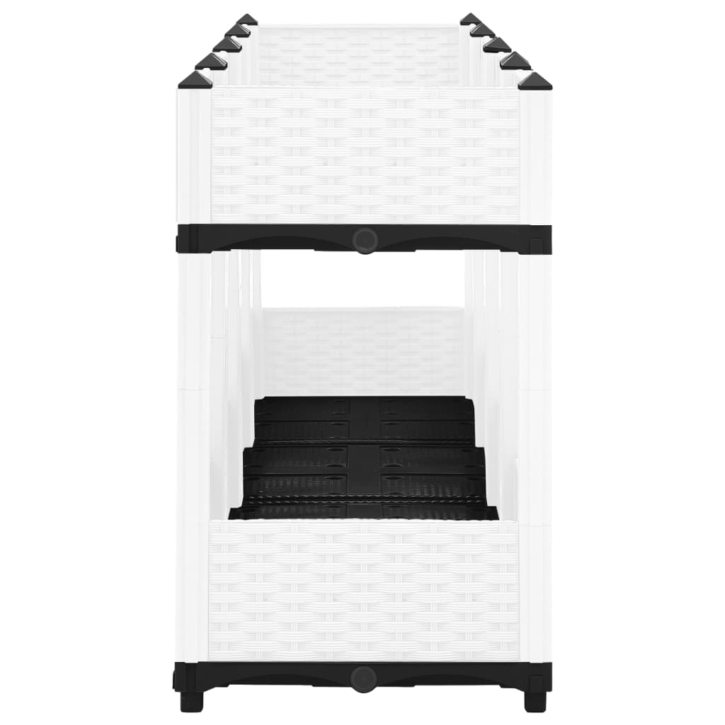 Ce lit surélevé est un excellent choix pour faire pousser une variété de fleurs ou de plantes, ce qui en fait un excellent supplément à votre jardin. Matériau durable : le polypropylène est un plastique populaire qui est également l’un des matériaux les plus utilisés dans le mobilier d’extérieur. Il est léger, robuste et résistant aux chocs.Grand espace : le bac à fleurs est suffisamment profond et large pour contenir une grande quantité de terre et offre un espace suffisant pour vos plantes, légumes, herbes et fleurs.Design élégant : avec son aspect élégant de rotin, le pot de fleurs convient aux jardins, aux patios, aux balcons, aux restaurants, aux cafés et à tout endroit où l’on peut utiliser des plantes. Bon à savoir :Pour faciliter au maximum le montage, chaque produit est livré avec des instructions.