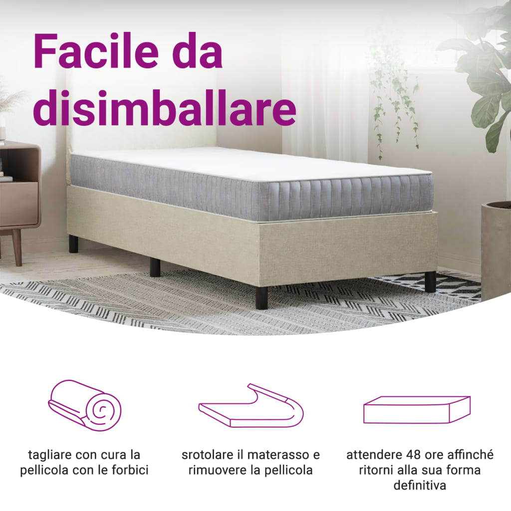 Ce matelas à ressorts ensachés est conçu pour vous apporter une sensation agréable et une expérience de sommeil confortable à la maison. Durabilité et longévité : le tissu présente un aspect simple et épuré tout en restant respirant, doux pour la peau et durable. Soutien individuel : chaque ressort hélicoïdal enrobé de tissu répond à vos points de pression, offrant un soutien ciblé et répartissant uniformément la pression subie par votre colonne vertébrale.Confort accru : le matelas à ressorts est conçu avec plusieurs couches, dont une couche de mousse, une couche de matelas isolant et une couche de ressorts. Cette combinaison offre une sensation de douceur et de confort pour toutes les positions de sommeil. En outre, le matelas absorbe efficacement les bruits et les vibrations provoqués par les mouvements de rotation, garantissant ainsi un sommeil paisible et non perturbé. Bon à savoir :Pour votre confort, le matelas est compressé et roulé dans une boîte, et vous pouvez facilement le déplacer et l’installer dans votre pièce.