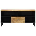 Ce meuble TV en bois avec un grand espace de rangement est un complément pratique et attrayant pour votre salon ou votre chambre à coucher. Bois de pin massif : le bois de pin massif est un matériau naturel magnifique. Le bois de pin a un grain droit et les nœuds donnent au matériau son aspect caractéristique et rustique. Fabriqué en bois de pin massif, le meuble TV est durable et robuste.Grand espace de rangement : le meuble TV dispose de 3 compartiments ouverts et de 3 tiroirs, offrant un grand espace de rangement pour garder vos magazines, livres, DVD et appareils multimédias bien organisés et à portée de main.Facile à entretenir : le banc de télévision est facile à nettoyer à l’aide d’un chiffon humide et nécessite peu d’entretien. Attention :Pour éviter qu’il ne bascule, ce produit doit être utilisé avec le dispositif de fixation murale fourni.