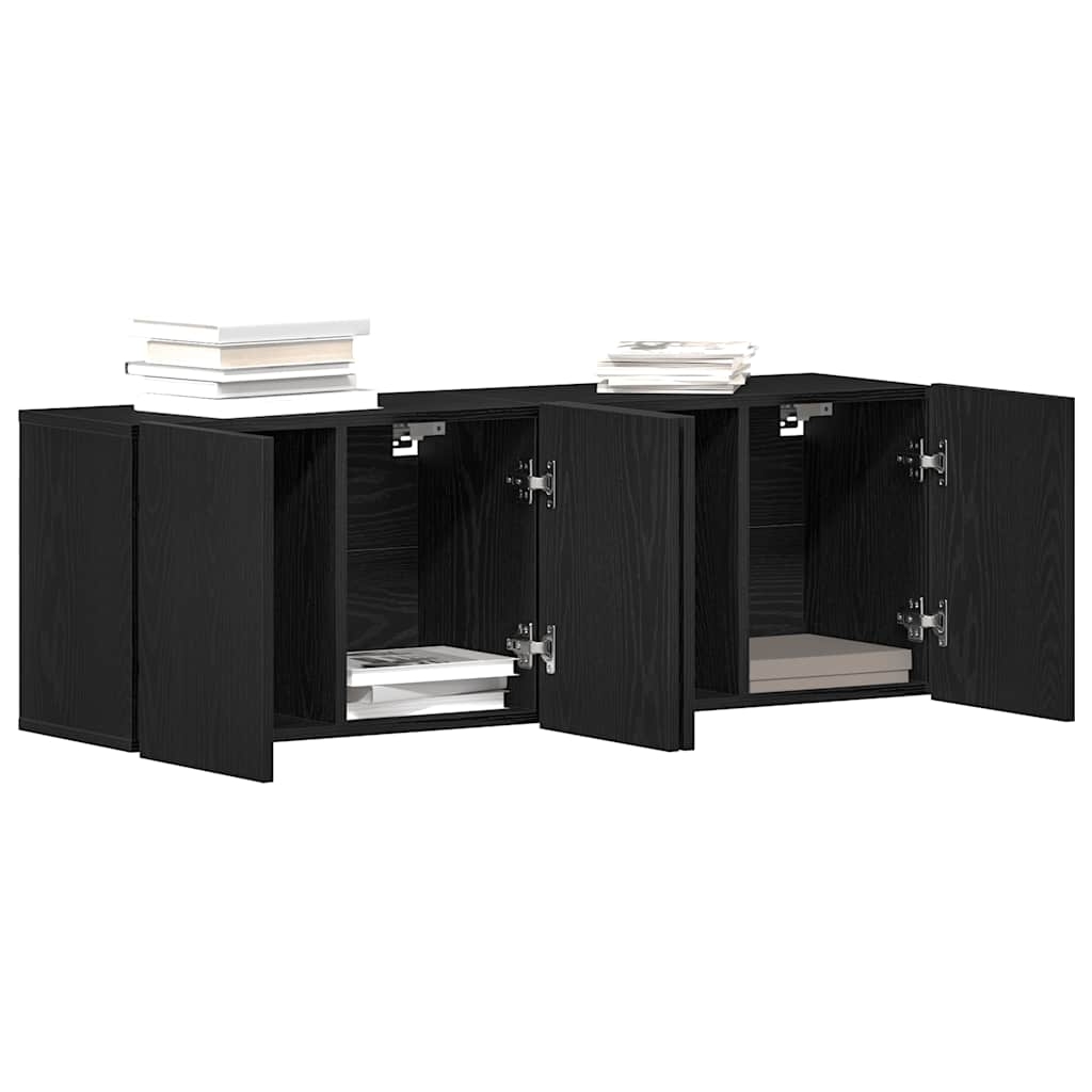 Avec un design à la fois tendance et pratique, ces meubles TV deviendront le point central de votre pièce. Matériau stable et durable : le bois d’ingénierie est un matériau durable et stable avec une surface lisse qui résiste à l’humidité, à la déformation et aux fissures, ce qui en fait un choix fiable pour une variété de projets.Vaste espace de rangement : ce meuble TV offre un grand espace de rangement pour garder vos magazines, livres, DVD et appareils multimédias bien organisés et à portée de main.Gain de place : le meuble multimédia peut être fixé au mur pour ajouter un espace de rangement supplémentaire. De cette façon, vous pouvez maximiser votre espace au sol et garder la zone propre.Facile à entretenir : ce meuble TV est facile à nettoyer avec un chiffon humide et nécessite moins d’entretien. Bon à savoir :Les vis et chevilles pour l’intérieur du mur ne sont pas incluses. Nous vous conseillons de choisir et d’utiliser des vis et des chevilles adaptées à vos murs. En cas de doute, vous pouvez consulter un professionnel. Veuillez lire et suivre chaque étape des instructions.