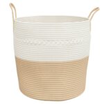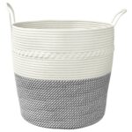 Ce panier de rangement séduit par son design moderne. Il est donc non seulement pratique, mais il attire également l’attention dans toutes les pièces. Matériau durable : le panier tressé est fabriqué à partir de cordes de coton tissées, connues pour leur respirabilité, leur douceur et leur durabilité exceptionnelle.Design peu encombrant : le panier de rangement pliable se range facilement lorsqu’il n’est pas utilisé, ce qui le rend idéal pour les petits espaces.Transport facile : équipé de deux poignées robustes, ce panier à couvertures offre une prise en main confortable et un transport sans effort.Panier polyvalent : le panier de rangement décoratif est polyvalent. Il peut être utilisé pour ranger les vêtements, les serviettes, les couvertures, les jouets des enfants ou d’autres articles ménagers, ce qui contribue à maintenir un espace de vie ordonné et organisé. Bon à savoir :Dès la réception du panier, nous vous recommandons de le remplir d’objets comme des oreillers pour lui redonner sa forme ou d’utiliser un fer à repasser pour le remodeler selon vos besoins.Pour prolonger la durée de vie du panier, évitez le lavage en machine car cela pourrait le déformer. Au contraire, lavez délicatement le panier à la main si nécessaire.