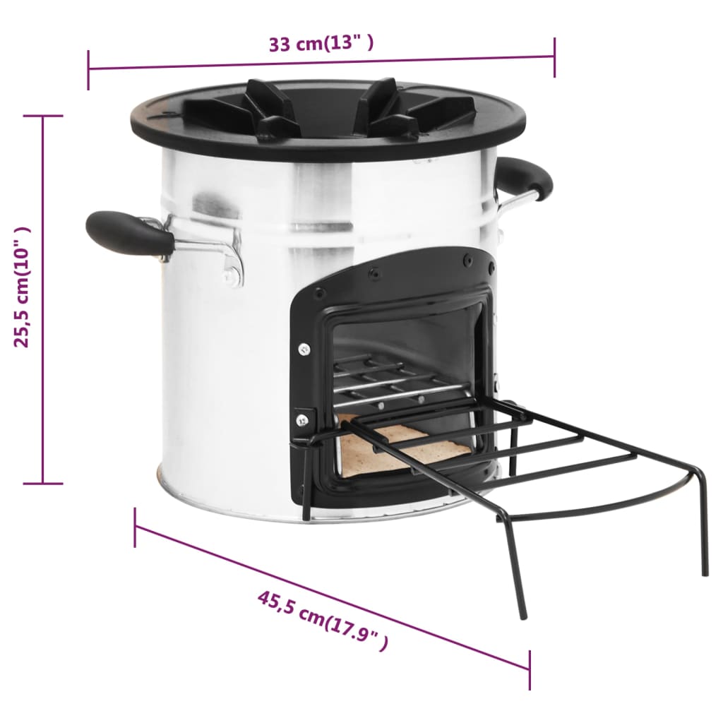 Poêle à bois de camping Argenté 45,5x33x25,5cm Acier inoxydable