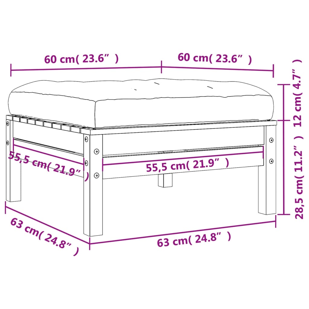 Ce repose-pied de jardin en bois avec coussin sera un excellent complément à votre jardin, terrasse ou patio pour discuter avec la famille et les amis ou simplement profiter du temps. Bois de pin massif : le bois de pin massif est un matériau naturel magnifique. Le bois de pin a un grain droit et les nœuds donnent au matériau son aspect caractéristique et rustique. Fabriqué en bois de pin massif, ce repose-pieds d’extérieur est durable et stable.Expérience d’assise confortable : le coussin bien rembourré rend le pouf de palette plus confortable pour y s’asseoir.Utilisation polyvalente : ce pouf d’extérieur peut non seulement être utilisé pour s’asseoir ou se détendre, mais il peut également être utilisé comme table basse pour contenir vos boissons, votre nourriture et d’autres décorations.Conception à lattes : la conception à lattes du pouf de jardin empêche efficacement l’eau de s’accumuler, ce qui garantit que l’assise reste sèche et exempte de tout risque de pourriture.Conception modulaire : ce pouf de terrasse présente une conception modulaire, ce qui le rend complètement flexible et facile à déplacer pour s’adapter à n’importe quel environnement. Vous pouvez le combiner avec d’autres segments modulaires disponibles dans le menu déroulant pour créer vos propres configurations d’ensemble de salon de jardin personnelles ! Bon à savoir :Pour que vos meubles d’extérieur restent beaux, nous vous recommandons de les protéger avec une housse imperméable.