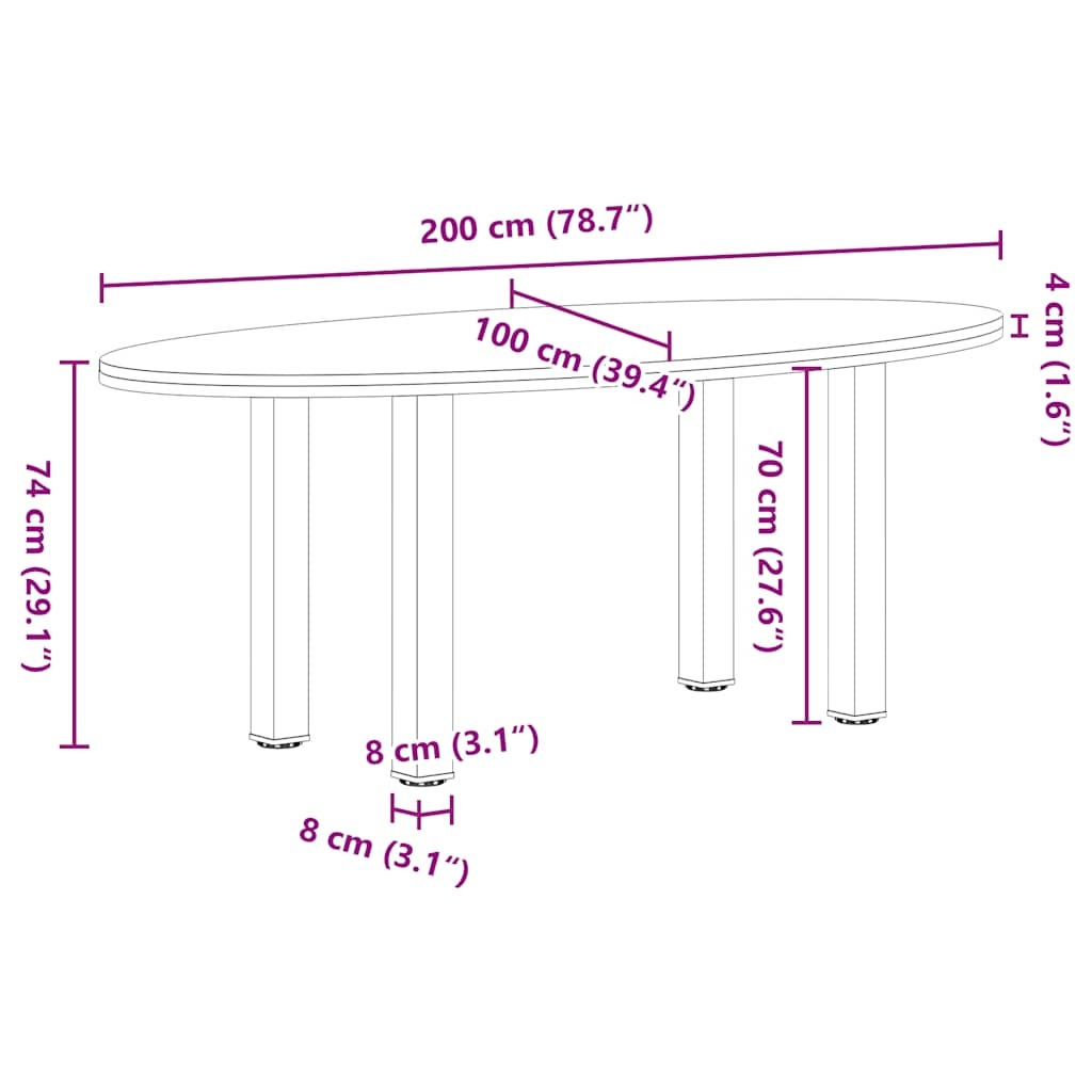 Faites de chaque repas un moment inoubliable en vous réunissant chaque jour avec votre famille ou vos amis autour de cette table à manger en bois ! Matériau robuste et durable : le bois de chêne massif est connu pour sa solidité, sa durabilité et la beauté de son grain, ce qui en fait un matériau idéal pour les meubles de longue durée. Sa résistance naturelle aux insectes et aux champignons permet aux meubles en chêne de rester attrayants et fonctionnels pendant des années.Grande table : cette table mesure 200 x 100 cm, ce qui permet de disposer d’un grand espace pour s’asseoir et d’en faire la pièce maîtresse de votre salle à manger.Charme unique : les nœuds, les fissures et les variations de couleur étant des caractéristiques naturelles du bois de chêne, chaque pièce de ce produit possède son charme distinctif. Reportez-vous aux images pour des exemples des variations auxquelles vous pouvez vous attendre.Conception pratique : ces pieds de table à manger comprennent des niveleurs de pied réglables, assurant la stabilité même sur les sols irréguliers et minimisant les rayures. En outre, le support comporte des trous pré-percés et des vis incluses dans la livraison, qui peuvent être utilisées pour fixer le pied au plateau de la table, ce qui facilite le montage.Cadre robuste et stable : les pieds de cette table de salle à manger sont en acier avec revêtement en poudre, garantissant une stabilité et une sécurité exceptionnelles. Bon à savoir :Chaque article est unique, avec des variations de couleurs et de grains. La livraison est aléatoire, ce qui garantit l’exclusivité et l’individualité de votre produit.Les nœuds et les petits défauts sont comblés avec un matériau de remplissage noir pour donner une surface de table agréable et lisse. Reportez-vous aux images pour des exemples.Le plateau de la table présente une épaisseur de 4 cm le long des bords pour une apparence robuste et une épaisseur de 2 cm au centre pour réduire la consommation de bois et le poids total.Veuillez percer des trous dans la partie centrale, pas le long des bords de la planche.Veillez à ne pas dépasser la profondeur de perçage maximale de 15 mm pour éviter d’endommager le plateau de table, car l’épaisseur du panneau est de 20 mm.Nous recommandons d’utiliser un tournevis plutôt qu’une perceuse électrique pour éviter que le bois ne se fissure lors de la fixation des pieds.