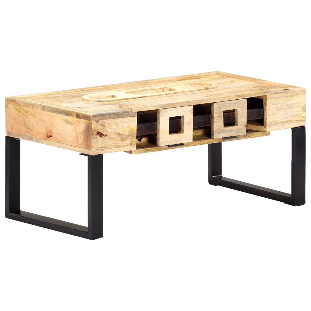 Cette table basse en bois de manguier massif, d’un style cassette spectaculaire, ajoutera une touche décorative et pratique à votre décoration. La table est fabriquée à la main en bois de manguier, ce qui la rend très stable et durable. Le bois de manguier est un bois dur dense et robuste qui présente des belles stries et des contours bruns ou dorés à la surface. Chaque étape du processus est réalisée avec le plus grand soin, que ce soit le polissage, la peinture ou le laquage. Le savoir-faire et les beaux grains de bois font de chaque meuble un article unique et légèrement différent l’un de l’autre. Le dessus de table robuste sera idéal pour placer des aliments, des boissons, des lampes ou tout autre objet de décoration. Elle comprend un compartiment pour vous fournir un espace de stockage supplémentaire pour garder à portée de main des petits articles tels que des clés, des bloc-notes, des stylos, des télécommandes et d’autres bibelots. Ses pieds en acier ajoutent à sa robustesse et à son style industriel époustouflant. Remarque importante : les couleurs et les grains peuvent varier d’une pièce à l’autre, rendant chacune de nos tables basses unique. La livraison est aléatoire, ce qui garantit l’exclusivité et l’individualité de votre produit.