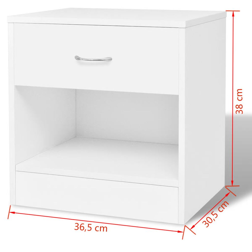 Ces 2 armoires de chevet, chacune avec 1 tiroir et un design simple et élégant, peuvent être utilisées comme tables de chevet ou supports de téléphone. Le tiroir offre amplement d’espace pour garder les petits objets organisés et à portée de main. L’étagère sous le tiroir offre un espace de rangement supplémentaire. Faites de haute qualité bois d’ingénierie et de MDF, les armoires sont durables et faciles à nettoyer. La livraison inclut 2 armoires de chevet et les accessoires d’assemblage. L’assemblage est très facile.