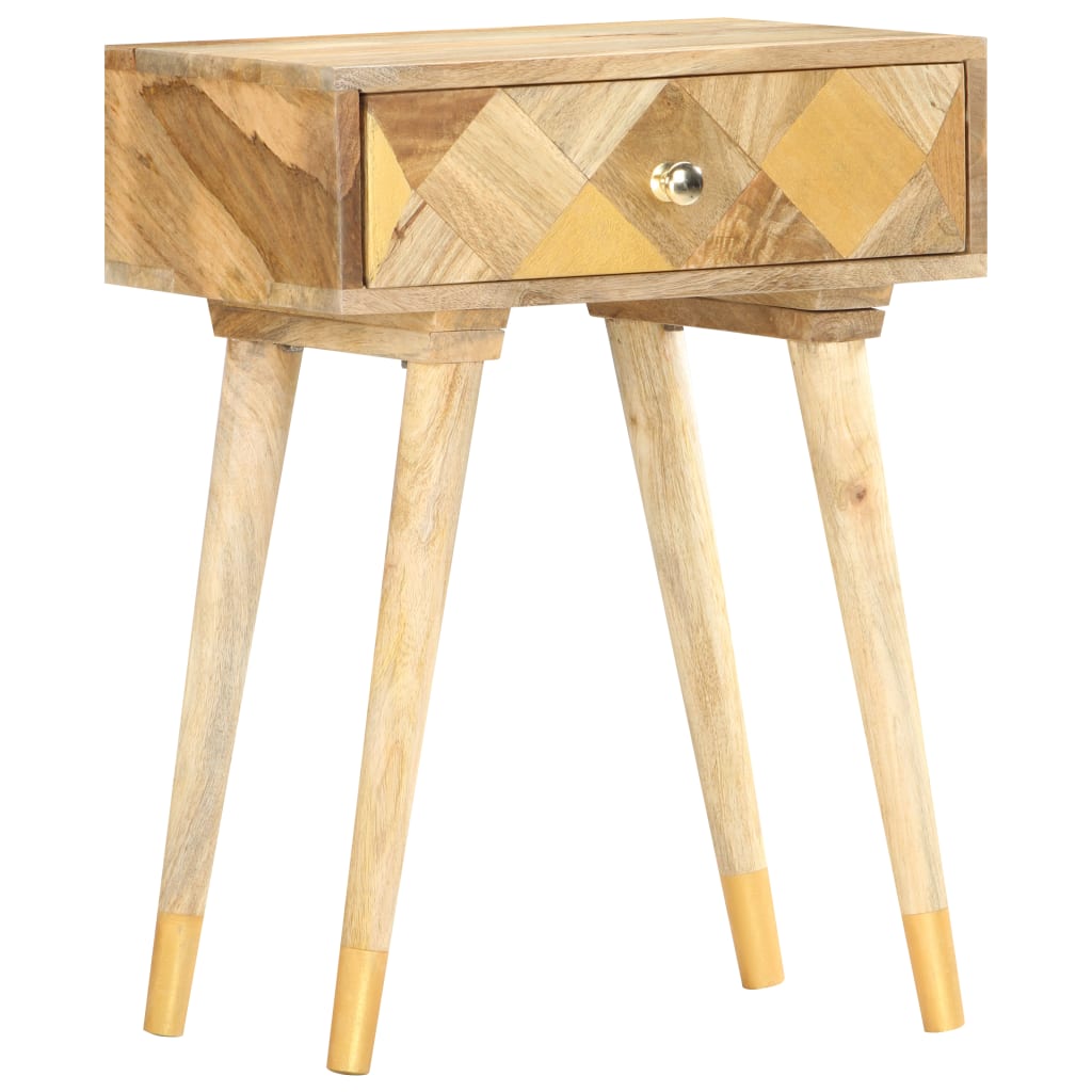 Donnez un air de charme rustique à votre intérieur avec notre élégante table de chevet ! Elle sera un supplément intemporel à votre espace de vie. Fabriquée en bois de manguier massif, la table de chevet a reçu une belle finition par polissage et laquage, ce qui lui confère un look raffiné. Le bois de manguier est un bois dur dense et robuste qui présente des belles stries et des contours bruns ou dorés à sa surface. De plus, le tiroir offre un espace de rangement pour garder les petits objets organisés et à portée de main. Note importante : Le savoir-faire exquis et les magnifiques grains de bois massif de manguier rendent chaque meuble unique et légèrement différent du suivant. La livraison est aléatoire, assurant ainsi l’exclusivité et l’individualité de votre produit. C’est facile à assembler.